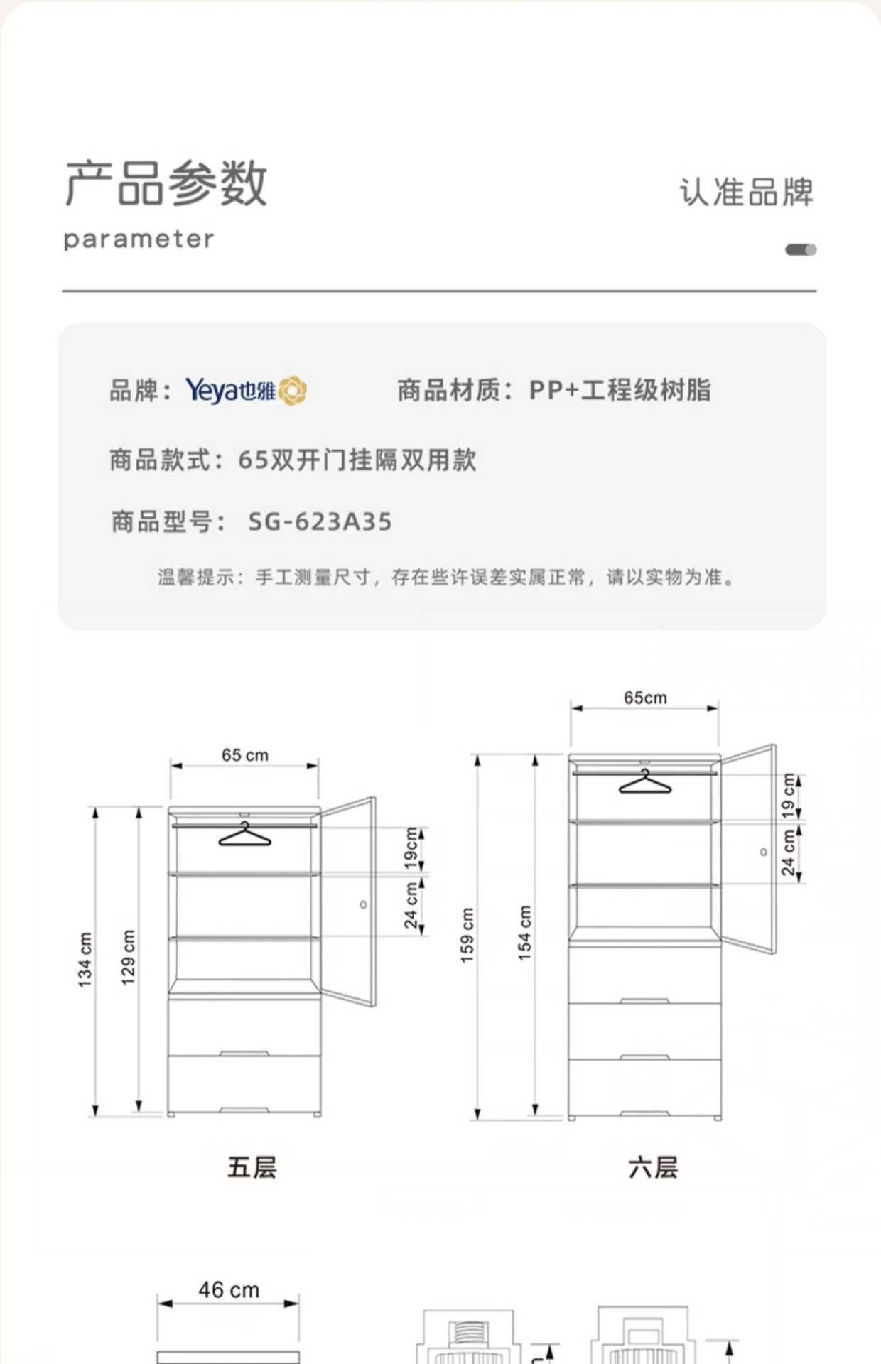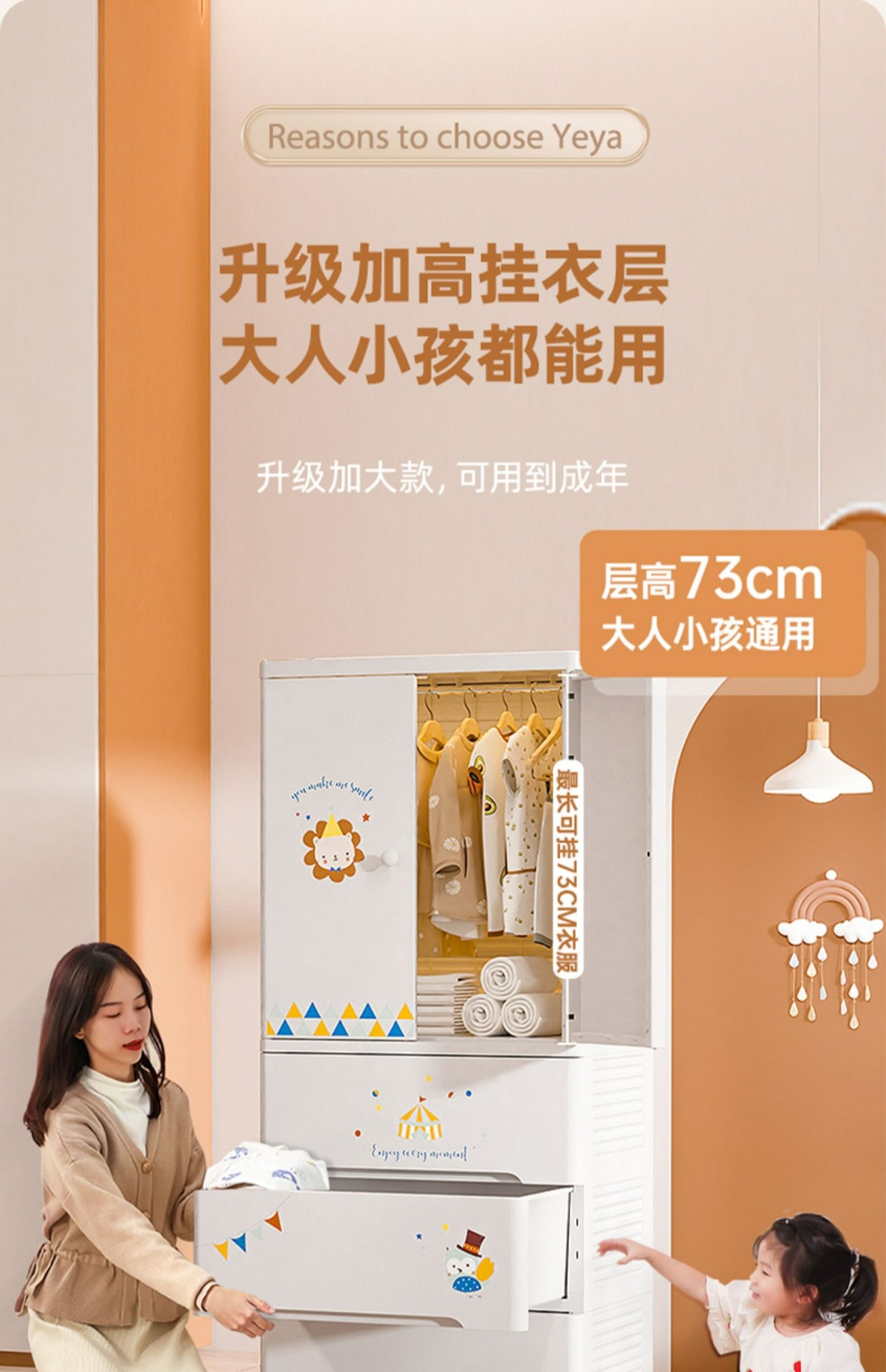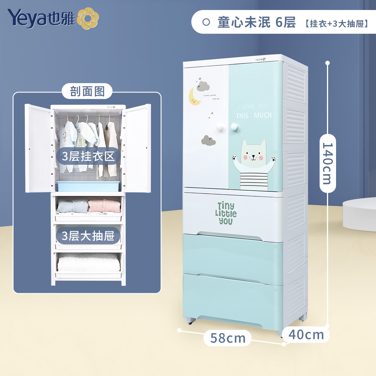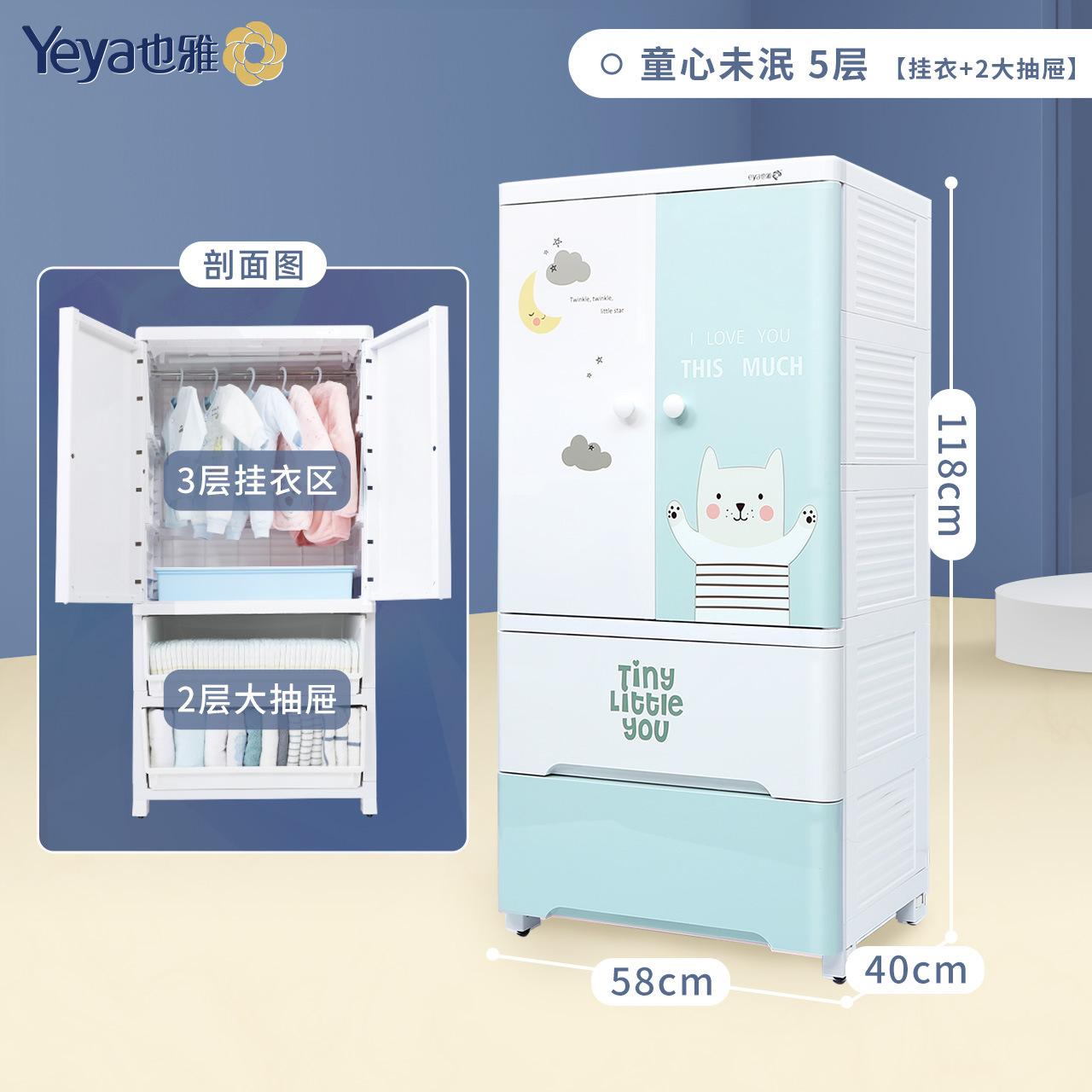 Yeya Yaya 더블 도어 로커 아기의 옷 교수형 옷장 플라스틱 두꺼운 옷 보관 마감 캐비닛스토어 가기