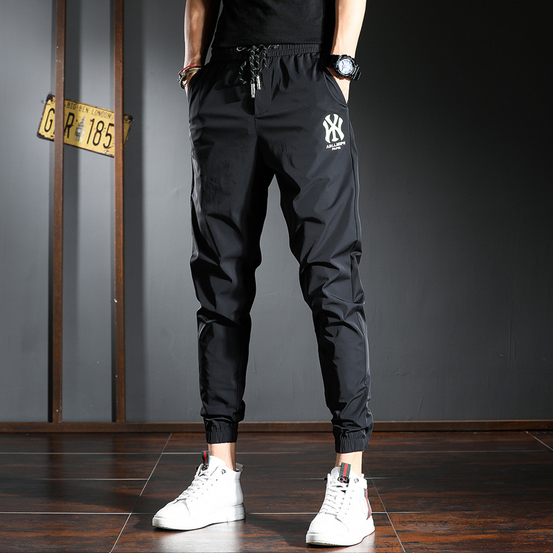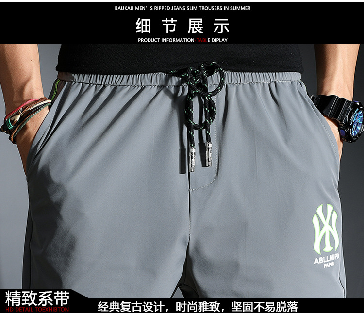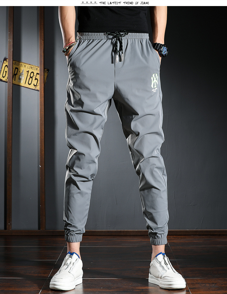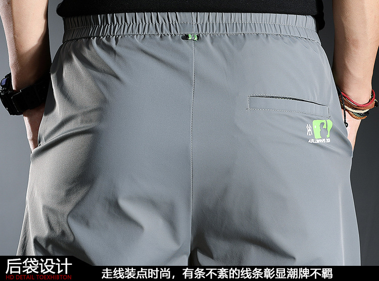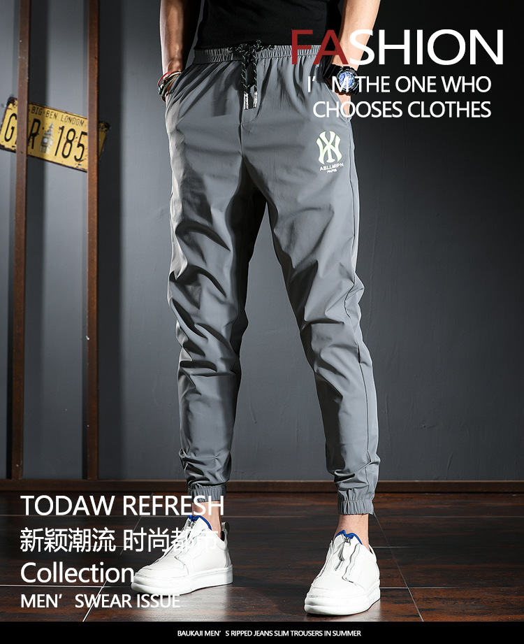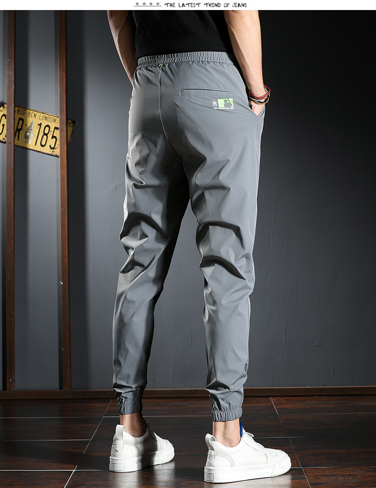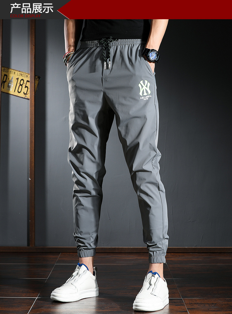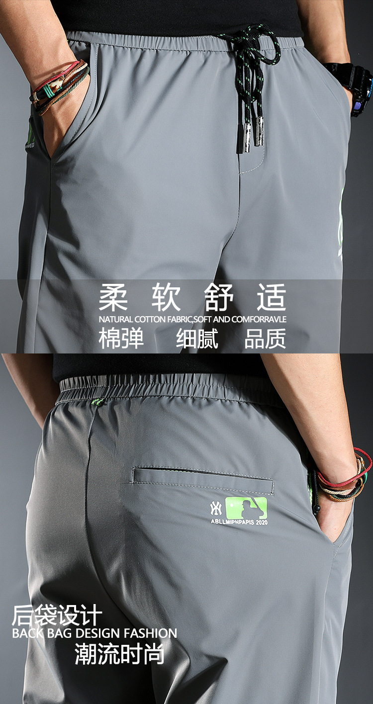 여름 텐셀 캐주얼 팬츠 남성용 슬림핏 클로즈업 아이스 실크 통기성 트렌디 한 남성용 팬츠 한국식 세련된 발목 묶은 긴 바지스토어 가기