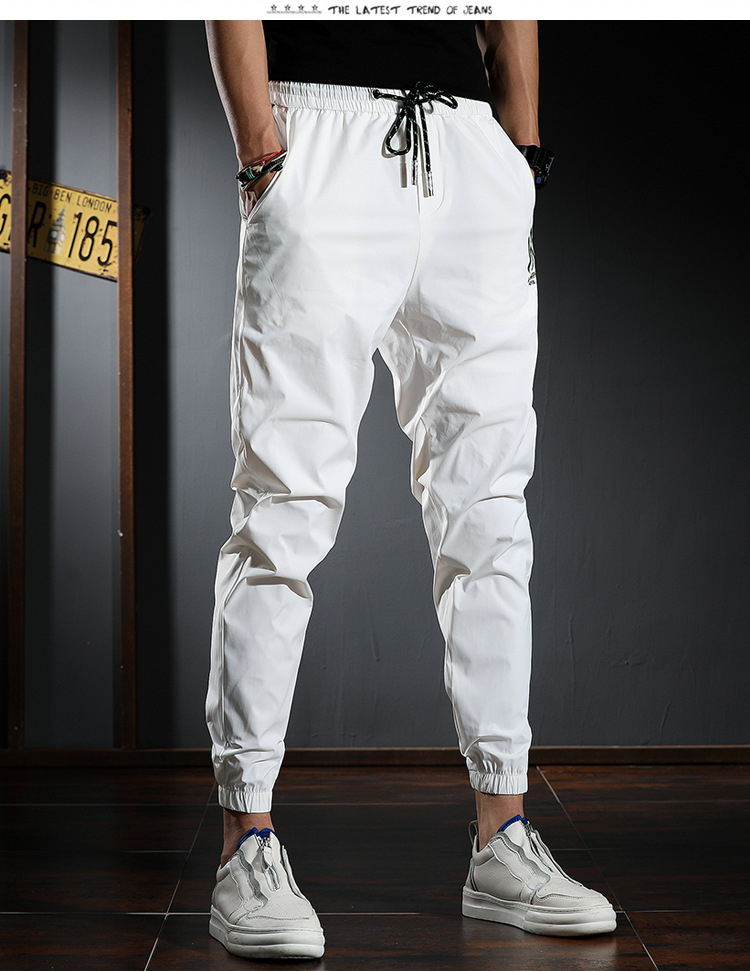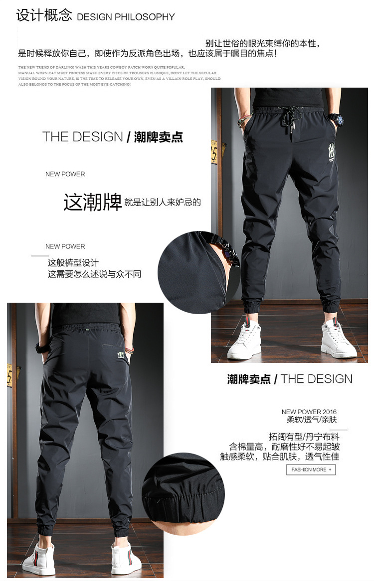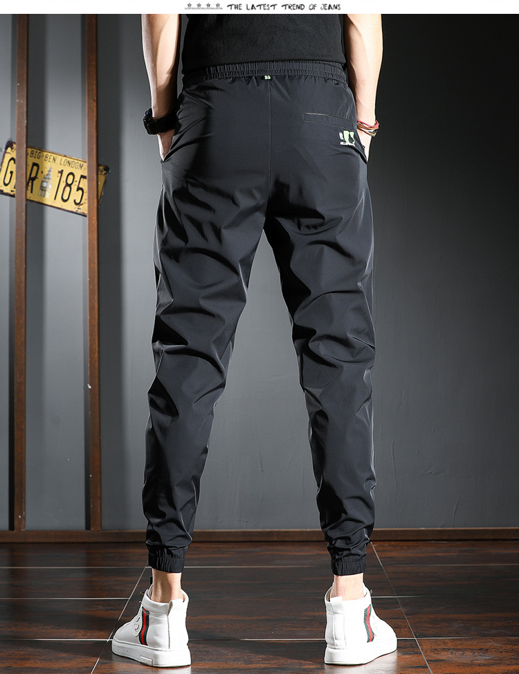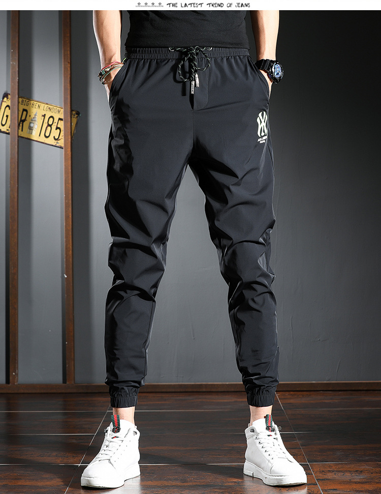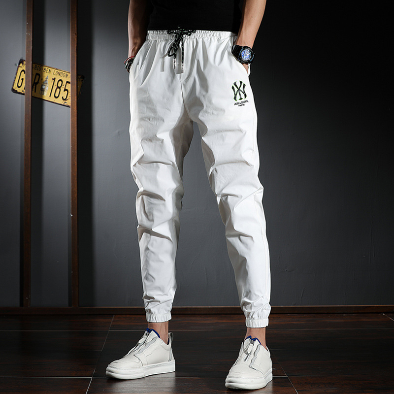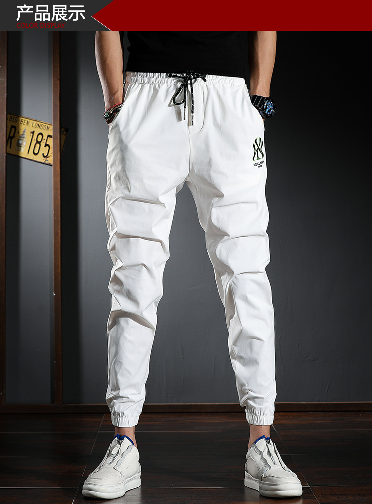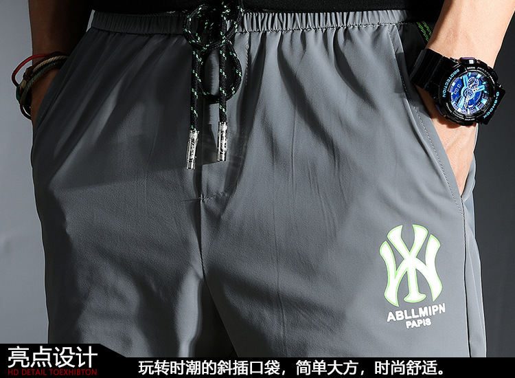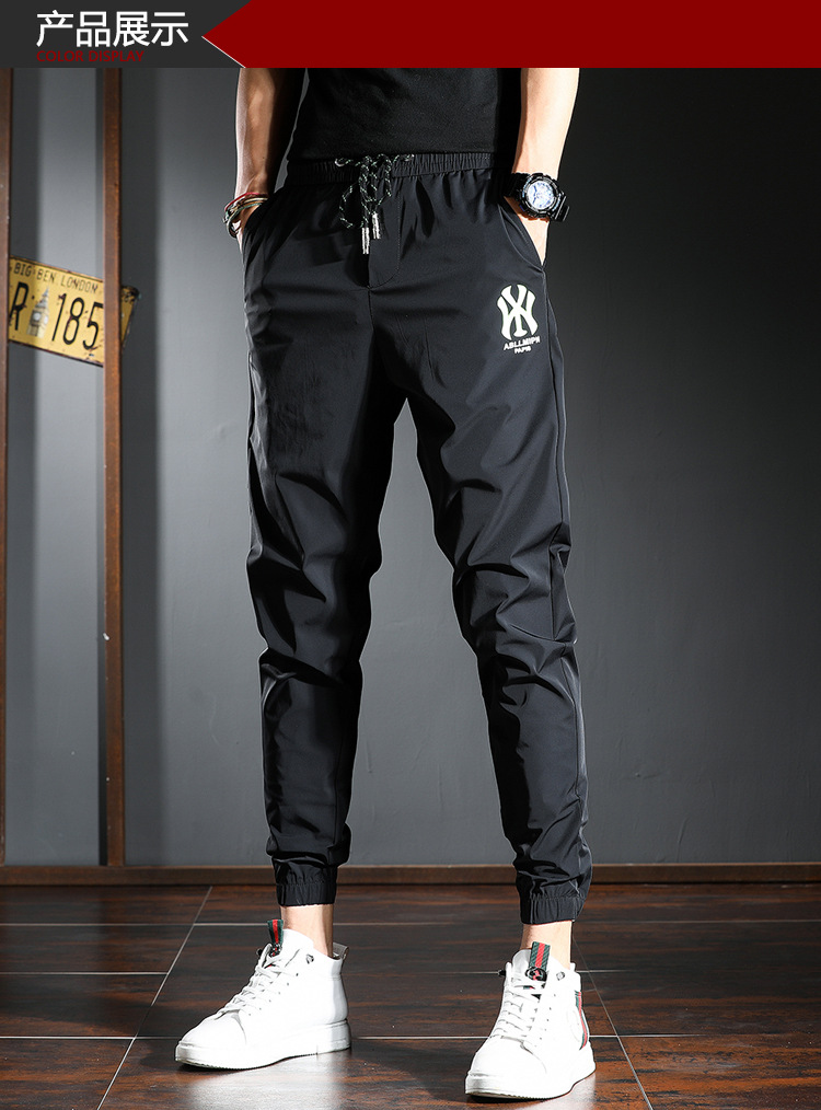 여름 텐셀 캐주얼 팬츠 남성용 슬림핏 클로즈업 아이스 실크 통기성 트렌디 한 남성용 팬츠 한국식 세련된 발목 묶은 긴 바지스토어 가기