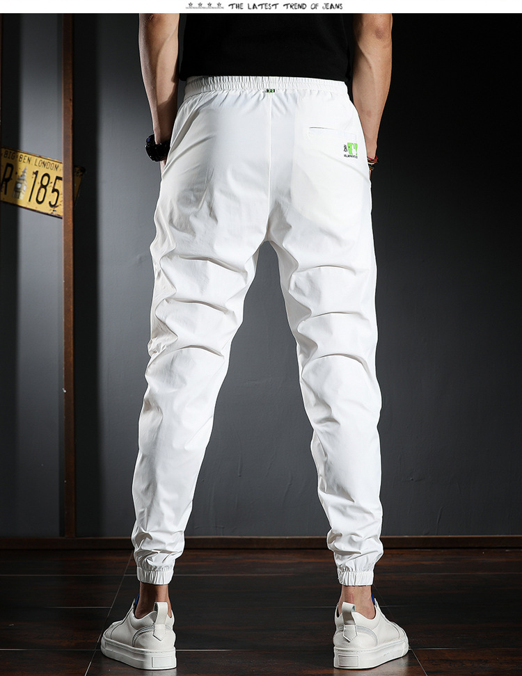 여름 텐셀 캐주얼 팬츠 남성용 슬림핏 클로즈업 아이스 실크 통기성 트렌디 한 남성용 팬츠 한국식 세련된 발목 묶은 긴 바지