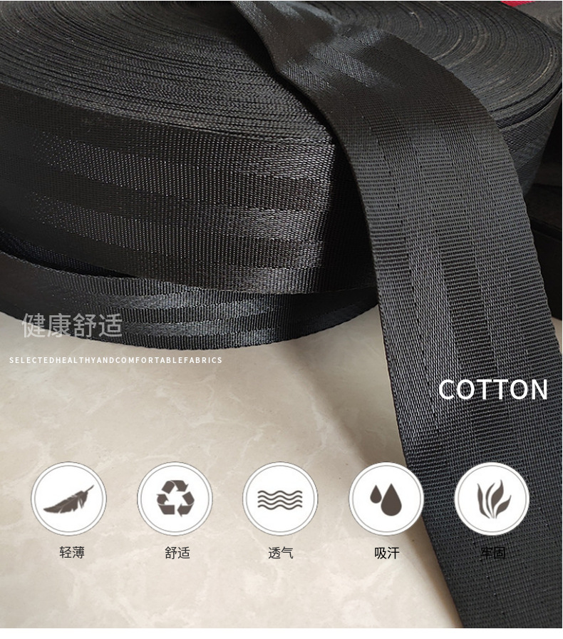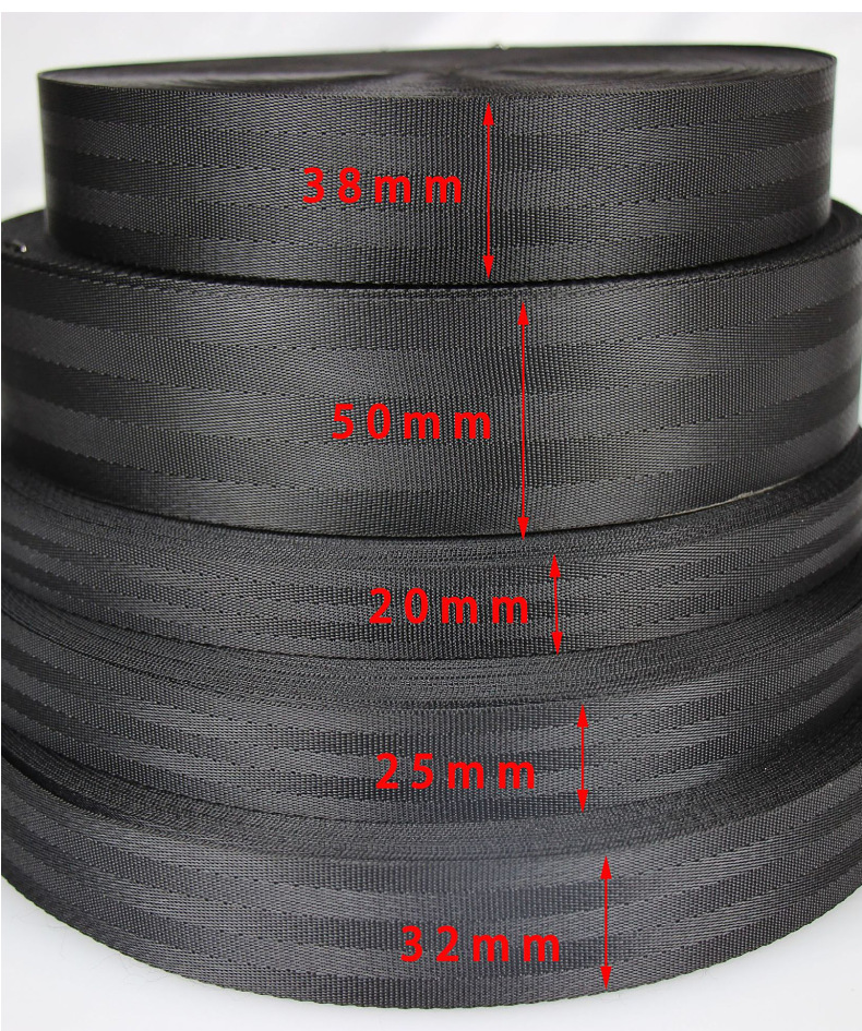 仿尼龙汽车安全带 坚固耐摩  可承重1吨  适用于各种工业用品  常用黑色规格有:2.0  2.5  3.2  3.8  5.0cm
