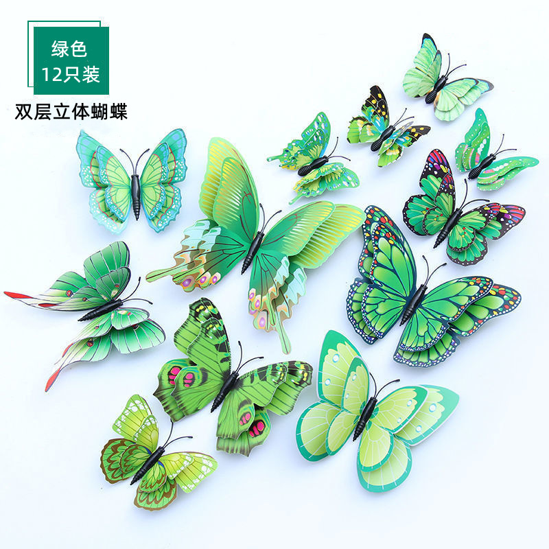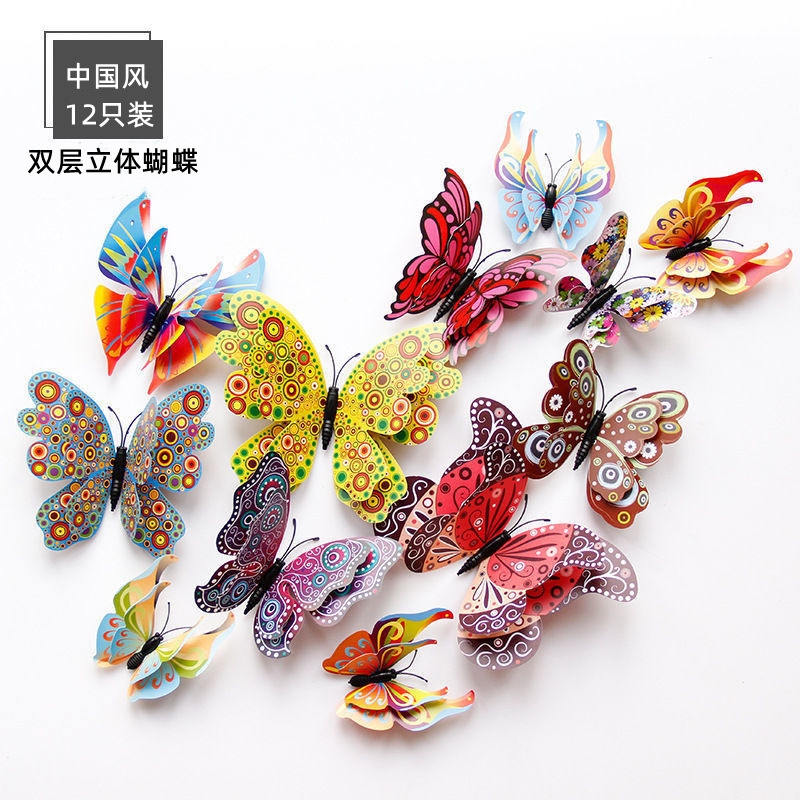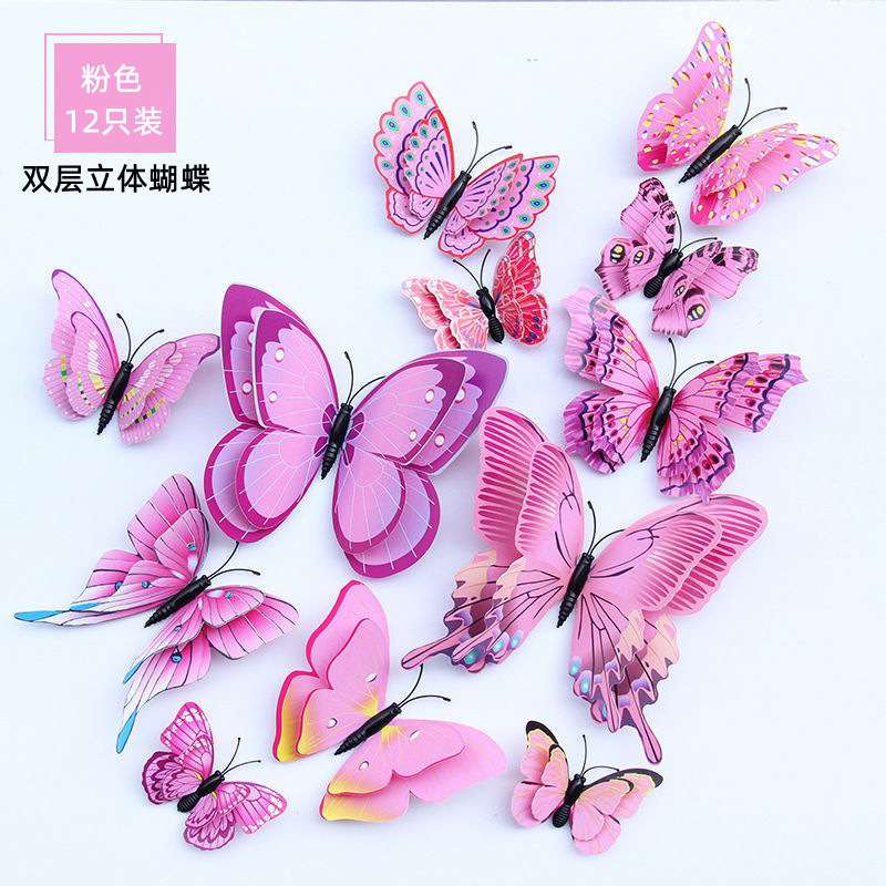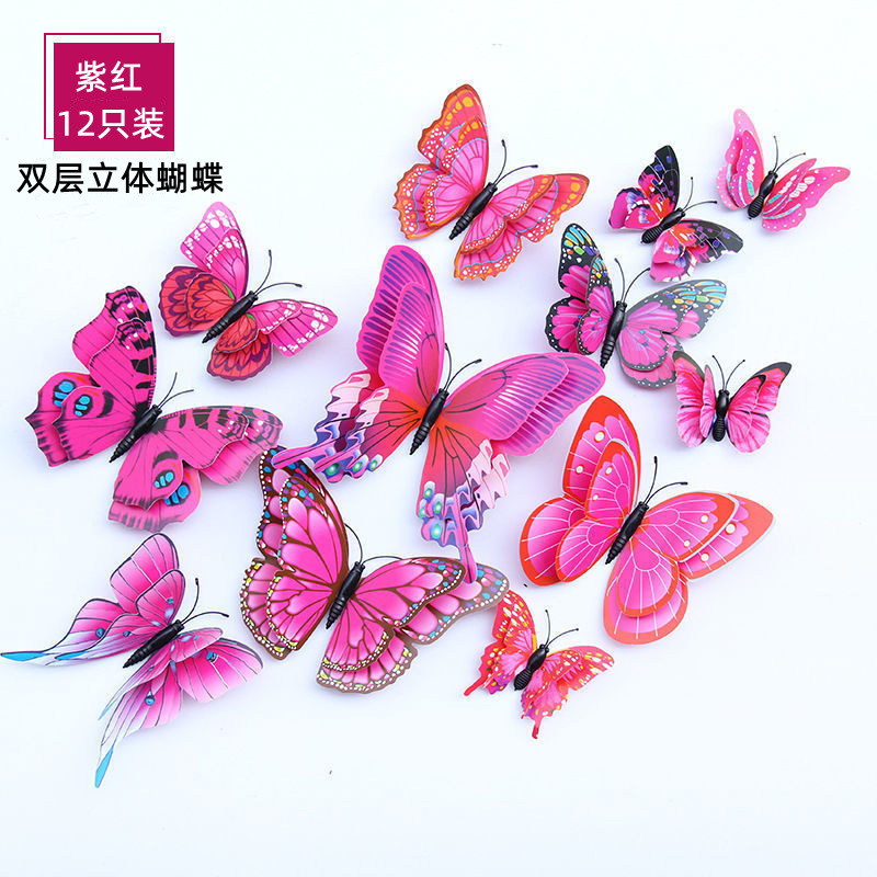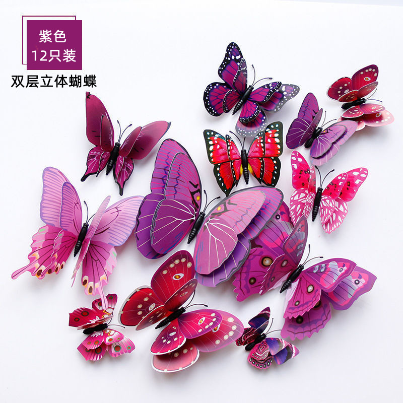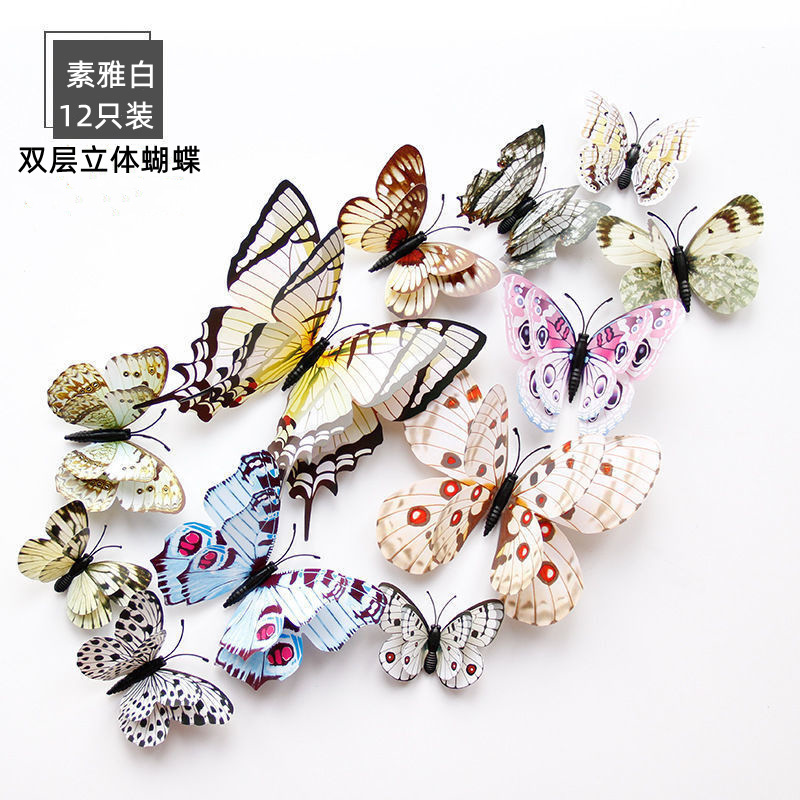 3D 시뮬레이션 나비 더블 크리에이티브 웨딩 홈 배경 벽 장식 pvc 자기 컬러 나비 벽 스티커
