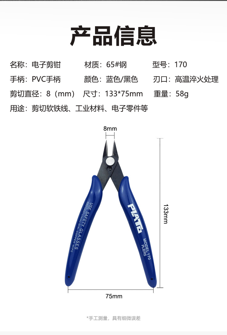 대각선 펜치 170 절단 펜치 전자 소원 펜치 절단 와이어 절단 재료 노즐 대각선 펜치 소모품 도구 가위 펜치스토어 가기