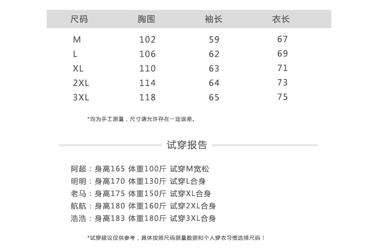\* 客服推荐尺码仅供买家参考,具体购买尺码由买家自己决定。