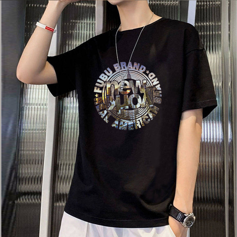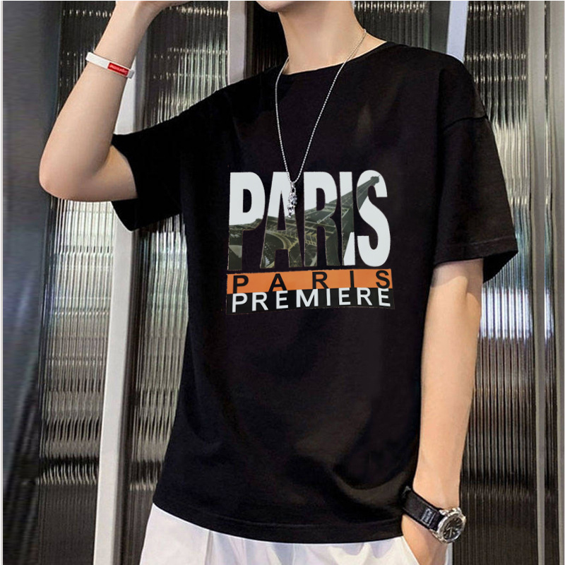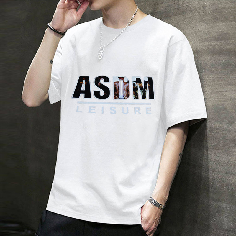 2025 신상 여름 반팔 티셔츠 남성용 얇은 캐주얼 슬림핏 상의 청소년 학생 프린트 이너웨어스토어 가기