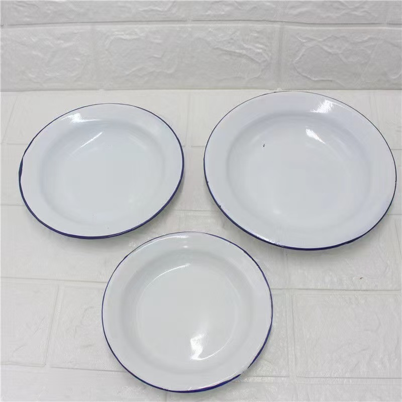 공장 직접 공급 빈티지 라운드 접시 냄비 접시 바베큐 플레이트 인쇄 로고 향수 에나멜 플레이트