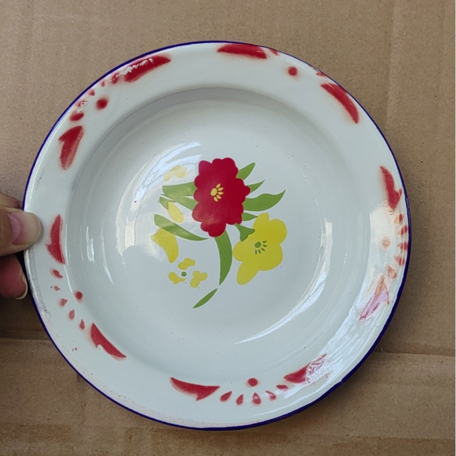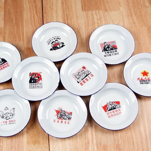 공장 직접 공급 빈티지 라운드 접시 냄비 접시 바베큐 플레이트 인쇄 로고 향수 에나멜 플레이트스토어 가기