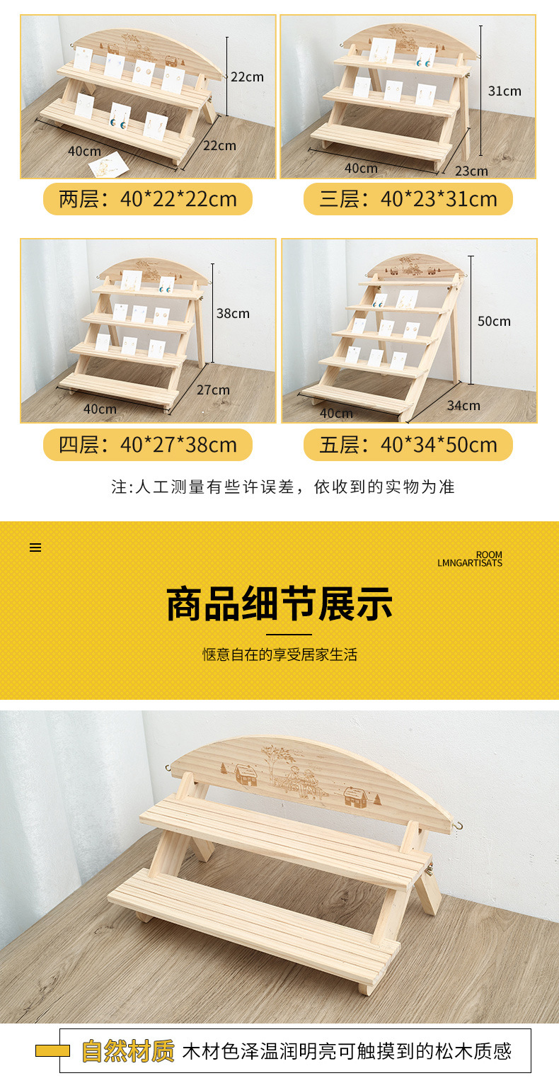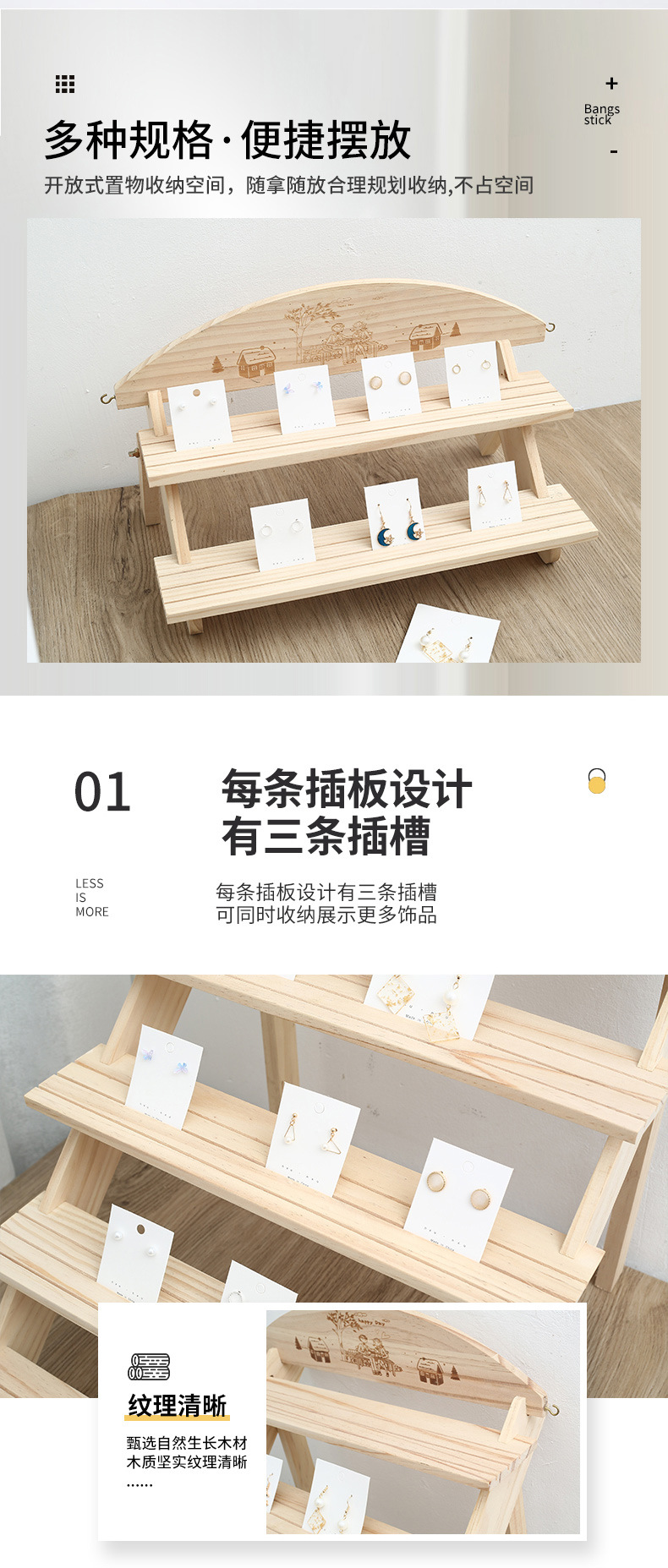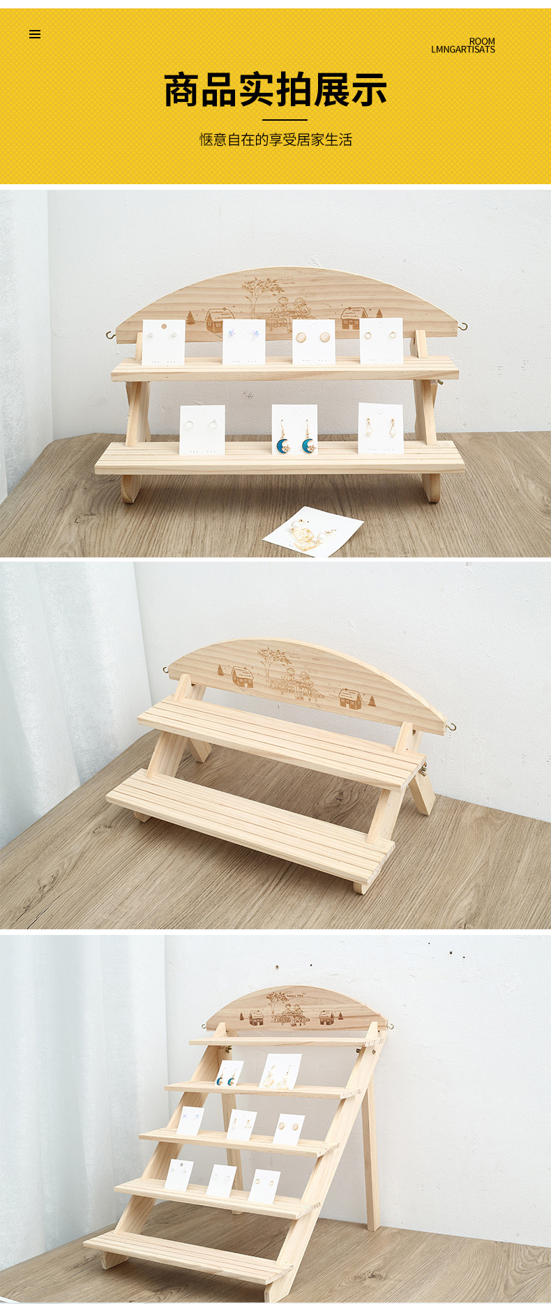 나무제품 보관함, 가정용 보석 진열대, 데스크탑 액세서리 정리대, 4단 선반