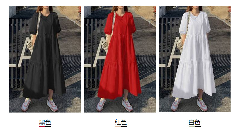 고급형 2026 봄 OL 스타일 여성용 면 소재 끈 달린 반팔 라운드넥 A라인 원피스 해외 판매