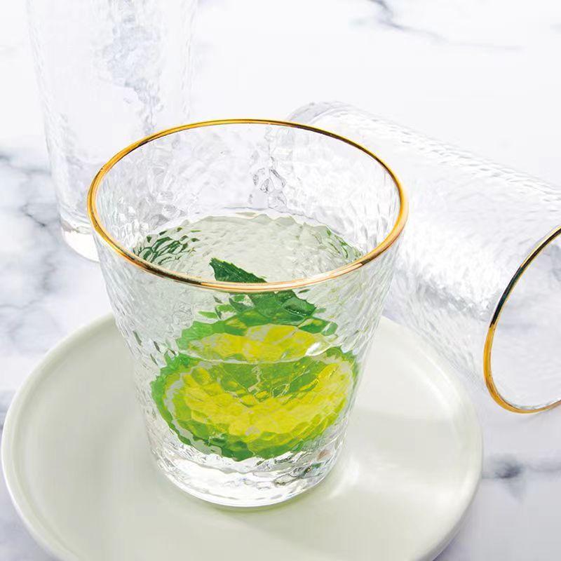 일본식 해머 패턴 프놈펜 유리 가정용 티 컵 빈티지 양각 높은 가치 주스 음료 컵 Ins스토어 가기