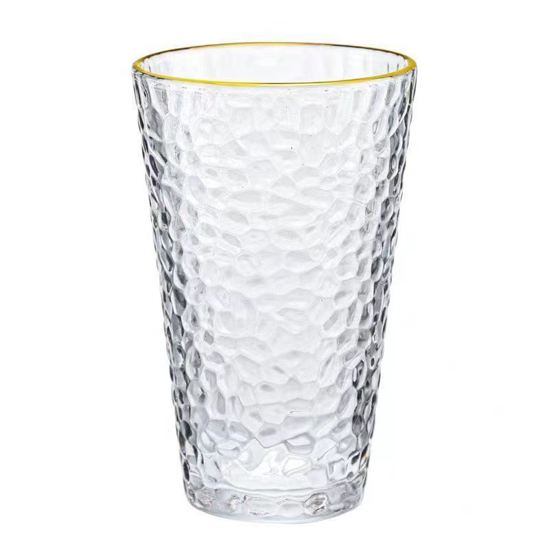 일본식 해머 패턴 프놈펜 유리 가정용 티 컵 빈티지 양각 높은 가치 주스 음료 컵 Ins