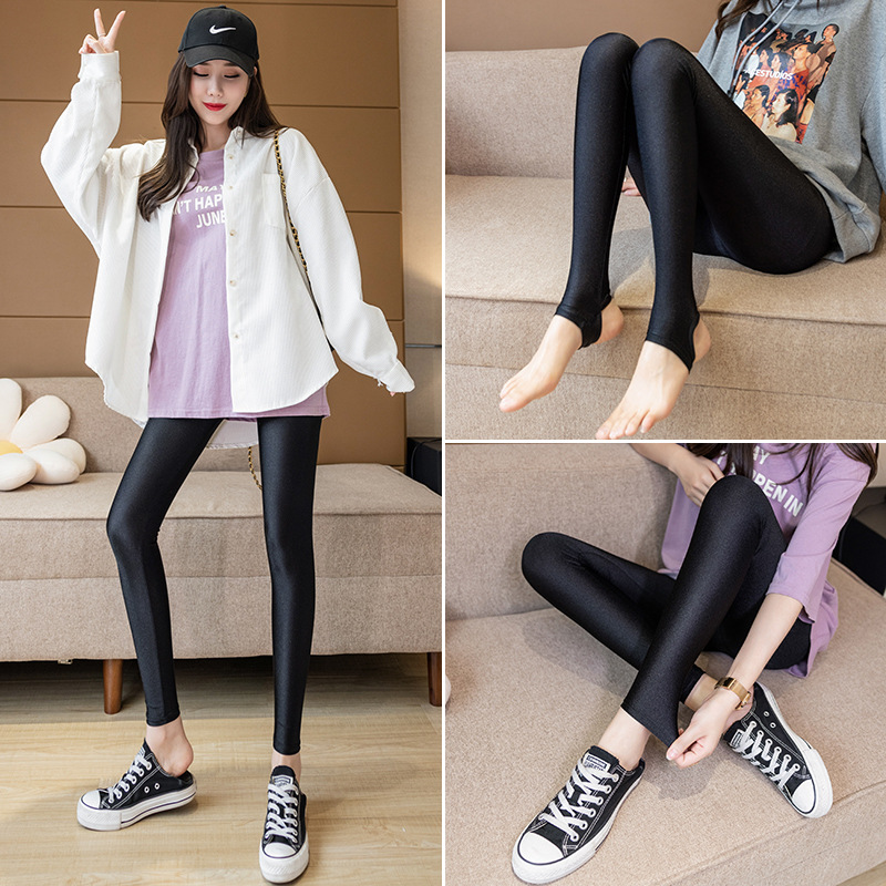 얇은 여성용 아이스 실크 눈부심 방지 안전 바지 특대 고탄성 슬림핏 슬림핏 아우터 팬츠 여성용 가죽 레깅스스토어 가기