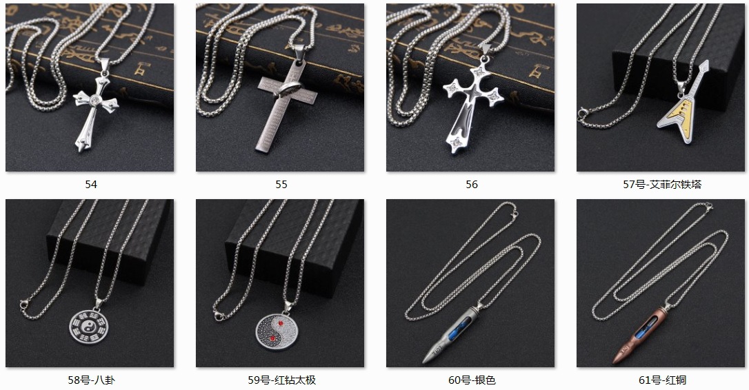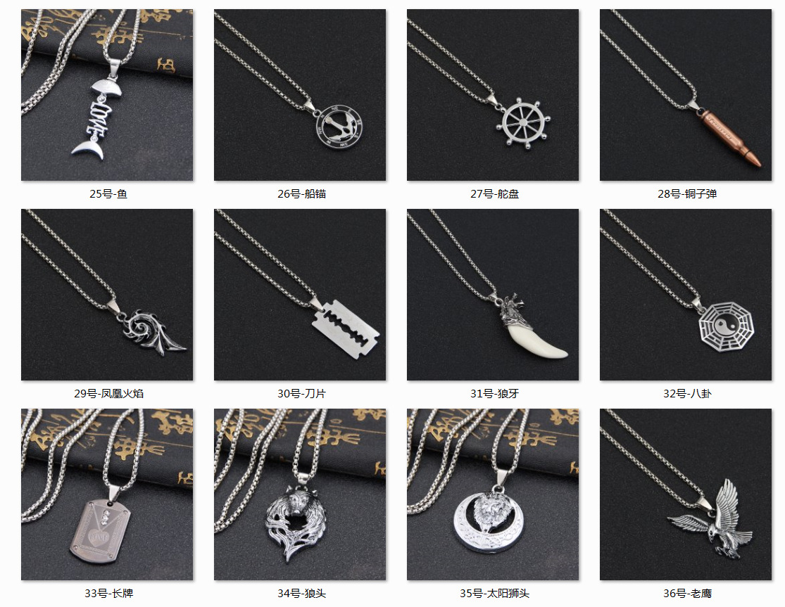材质:吊坠合金保色电镀,链子是不锈钢的,包装规格:8*6*1CM,重量20-26g,
