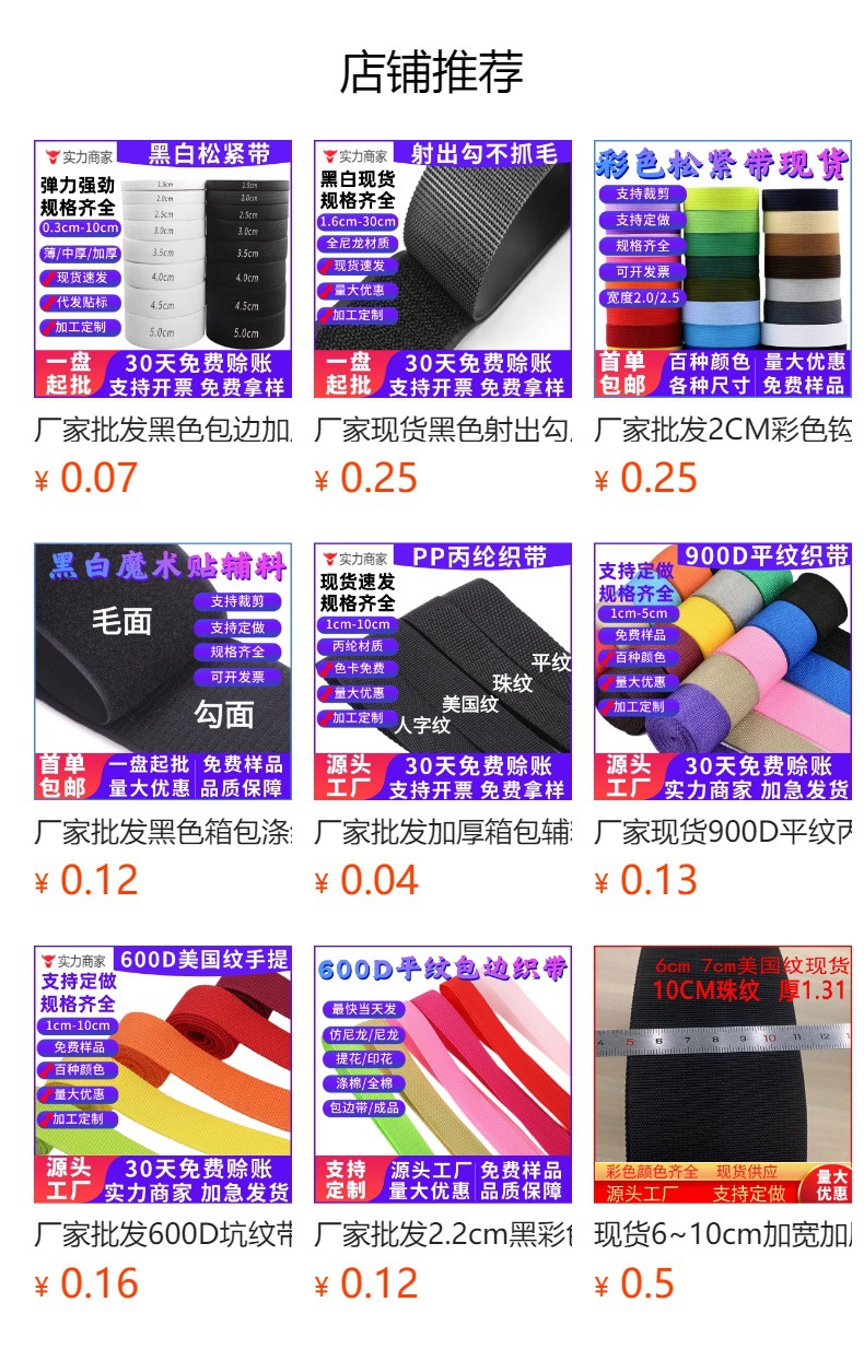 공장 도매 2.2 헤링본 흑백 색상 테두리 폴리 프로필렌 트릴 벨트 pp 벨트 600D 헤링본 테두리 웨빙스토어 가기