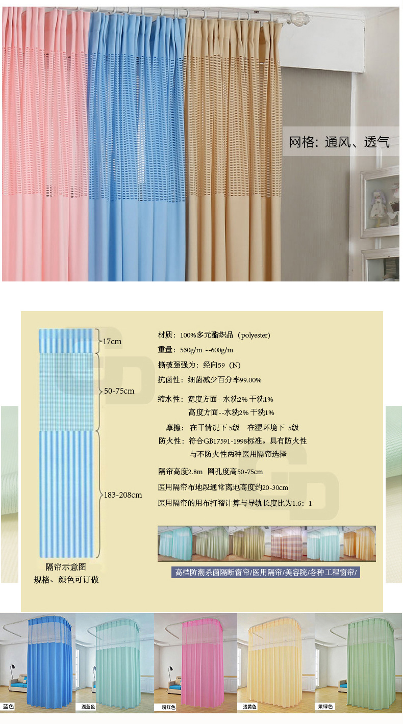 경편 의료용 커튼, 차광 격리 커튼, 격자 무늬 방염 항균 완제품 칸막이 커튼, 도매 현대식 심플 커튼