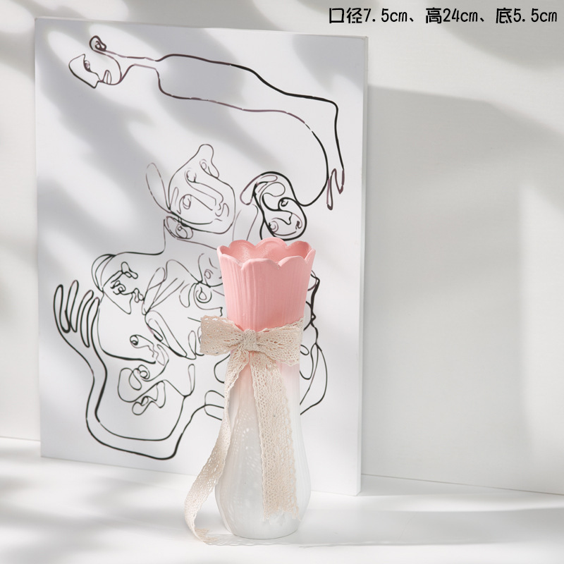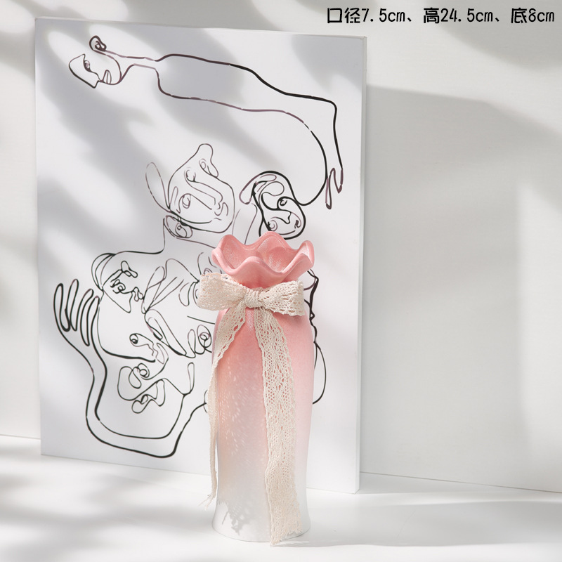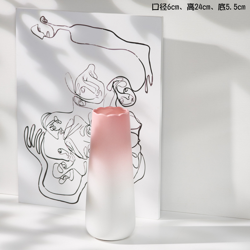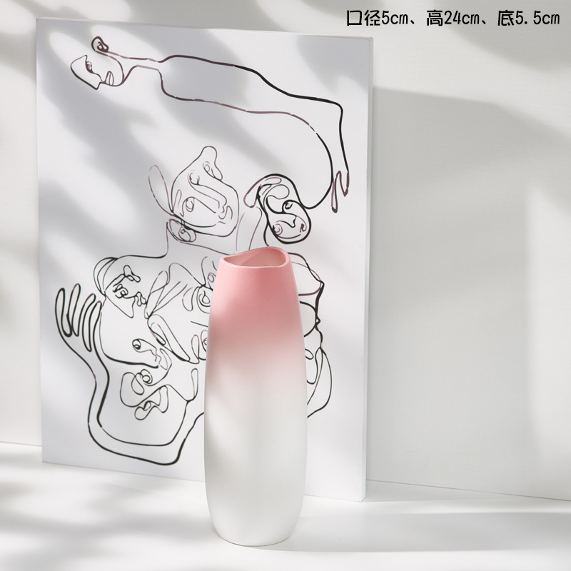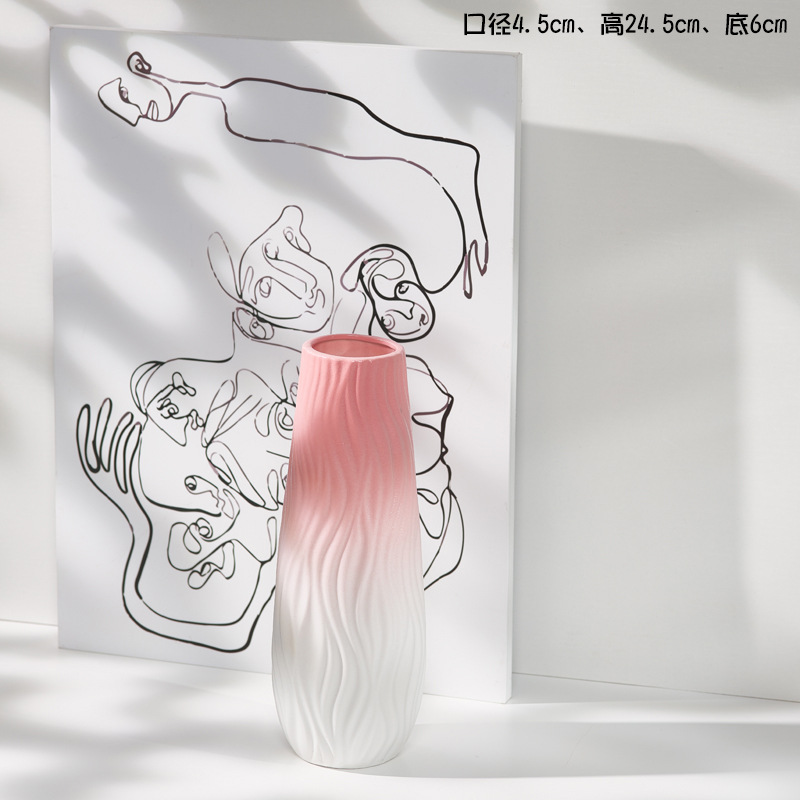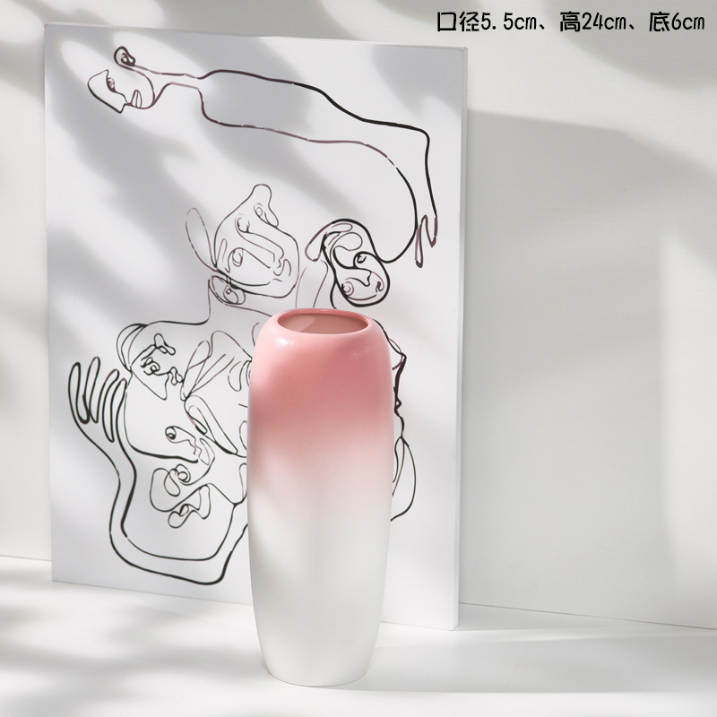 그라디언트 핑크 북유럽 세라믹 말린 꽃병 가정 장식 베란다 장식 소품 거실 꽃 배열 장식