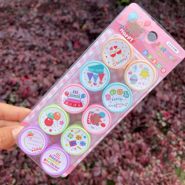 생일 축하 스탬프 유치원 학생 어린이 생일 선물 만화 스탬프 장난감 놀이 스탬프스토어 가기