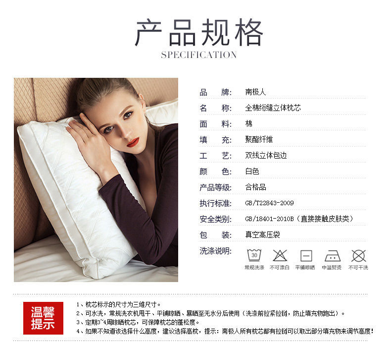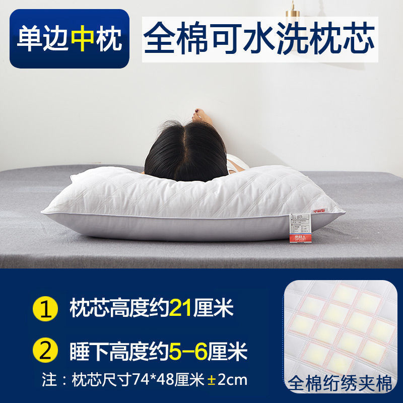 순면 남극인 베개심 학생용 싱글/더블 베개 목 보호 성인용 베개커버 가정용스토어 가기
