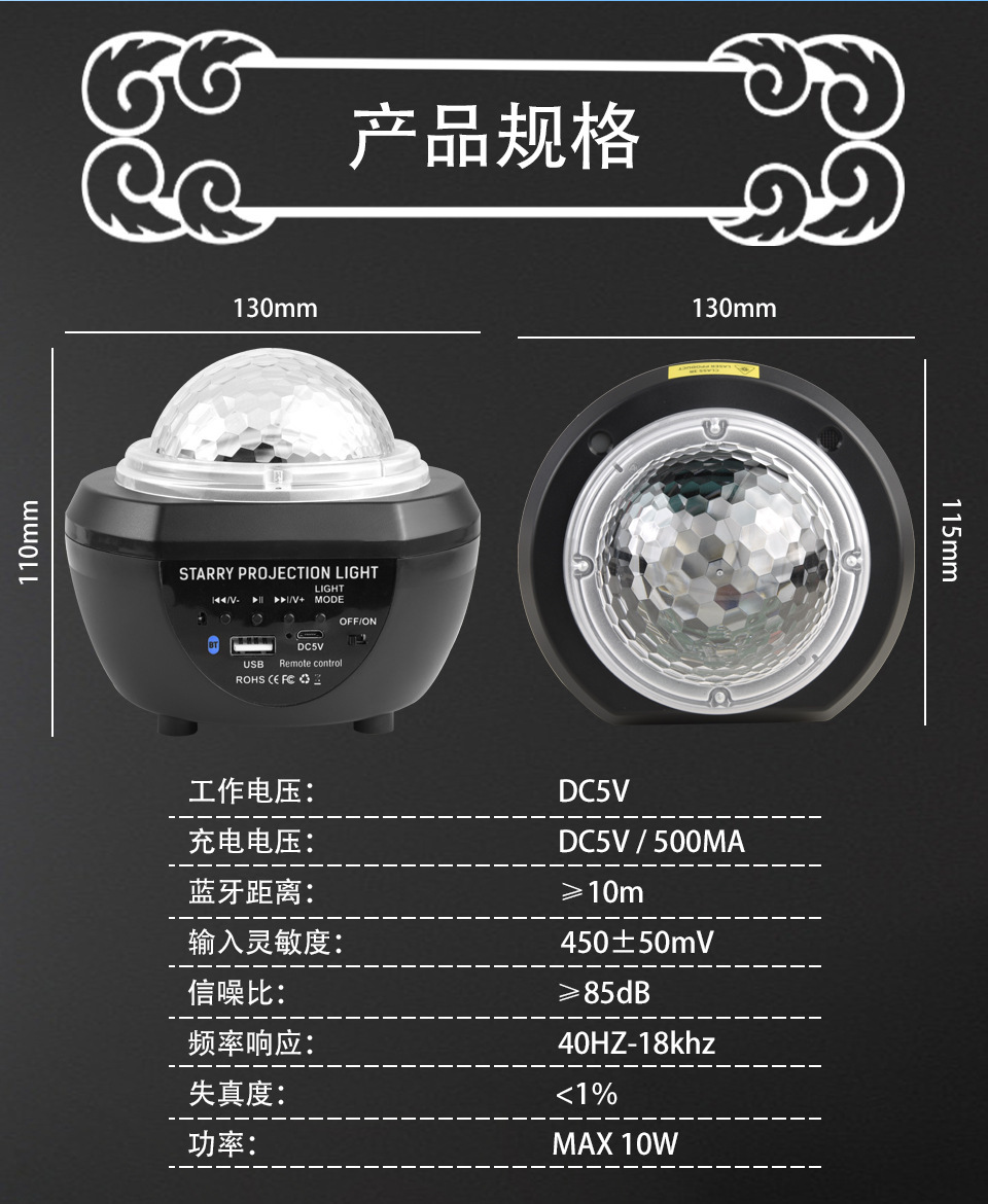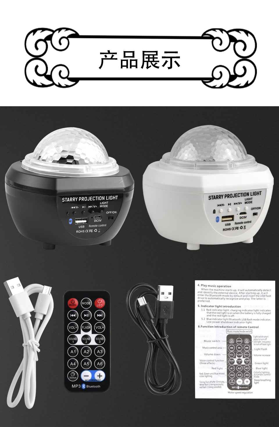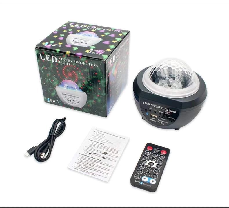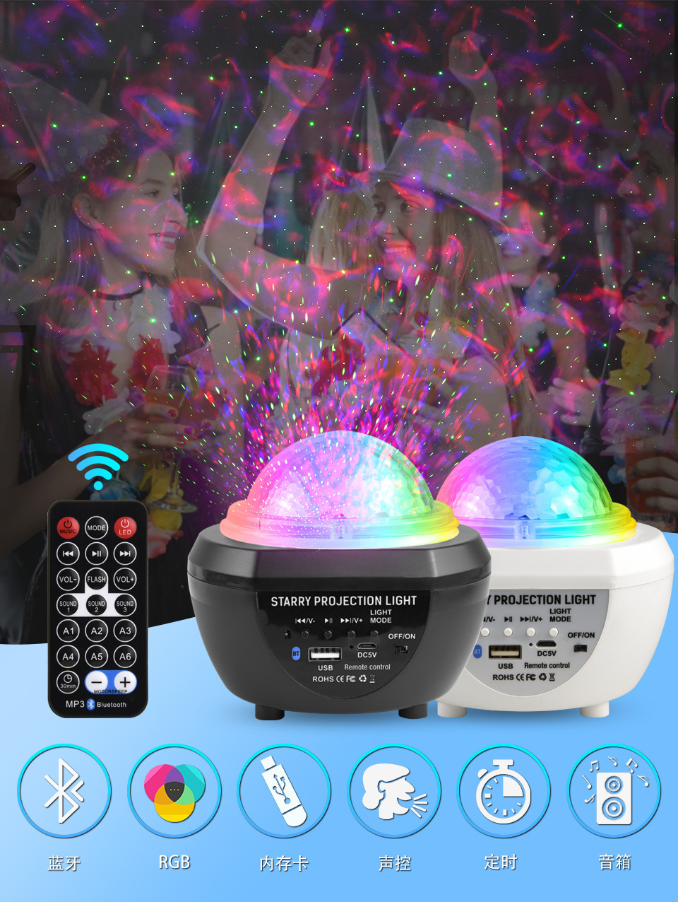 LED 별이 빛나는 하늘 프로젝션 램프 크리스마스 분위기 야간 조명 레이저 물 패턴 별이 빛나는 하늘 빛 5V 충전 블루투스 음악 홈