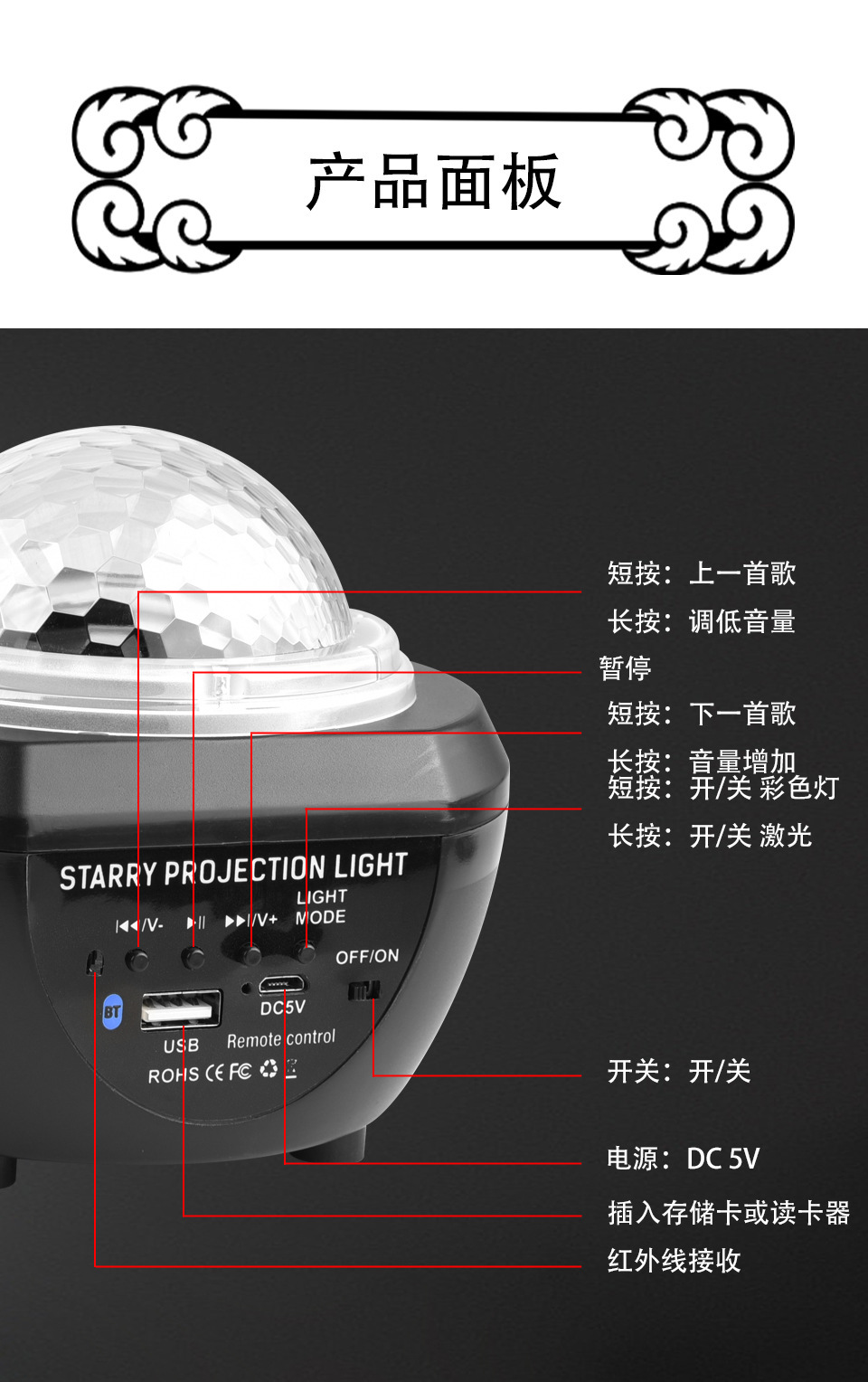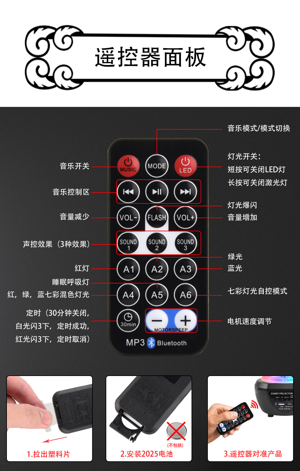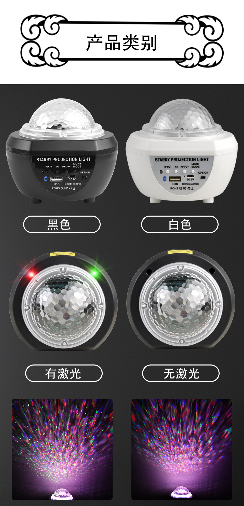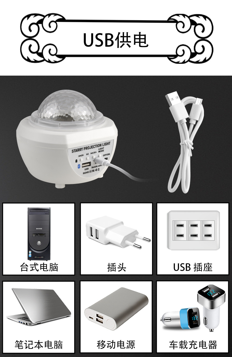 LED 별이 빛나는 하늘 프로젝션 램프 크리스마스 분위기 야간 조명 레이저 물 패턴 별이 빛나는 하늘 빛 5V 충전 블루투스 음악 홈
