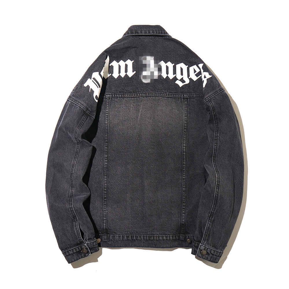 크로스 보더 유럽과 미국 패션 브랜드 팜 엔젤 재킷 백 레터 로고 인쇄 데님 재킷 남성과 여성의 하이 스트리트 재킷