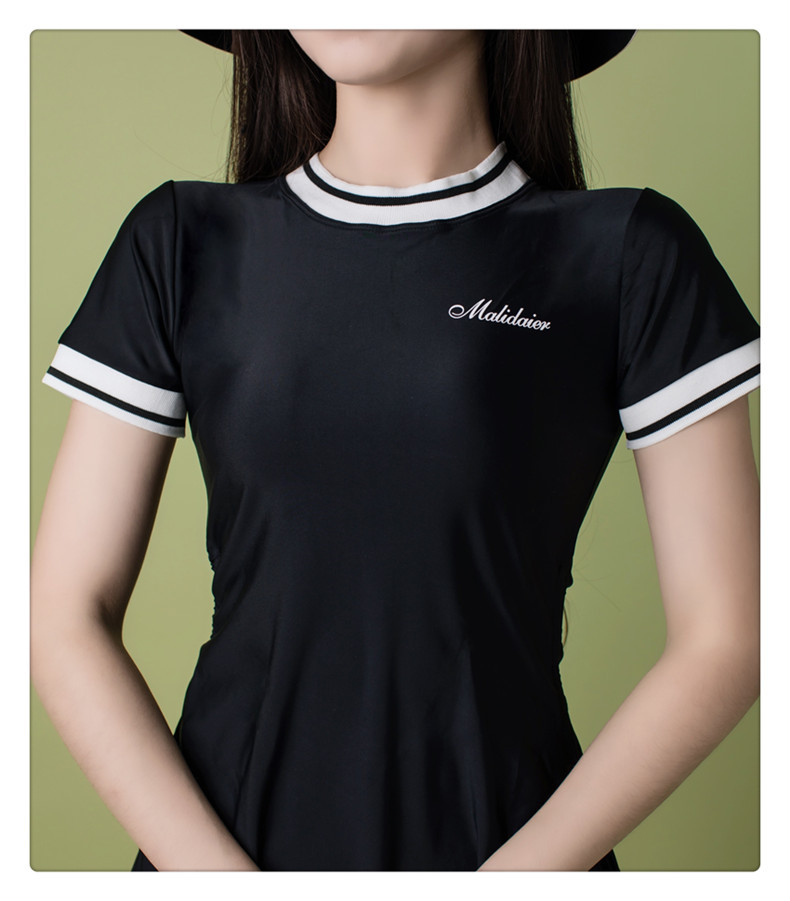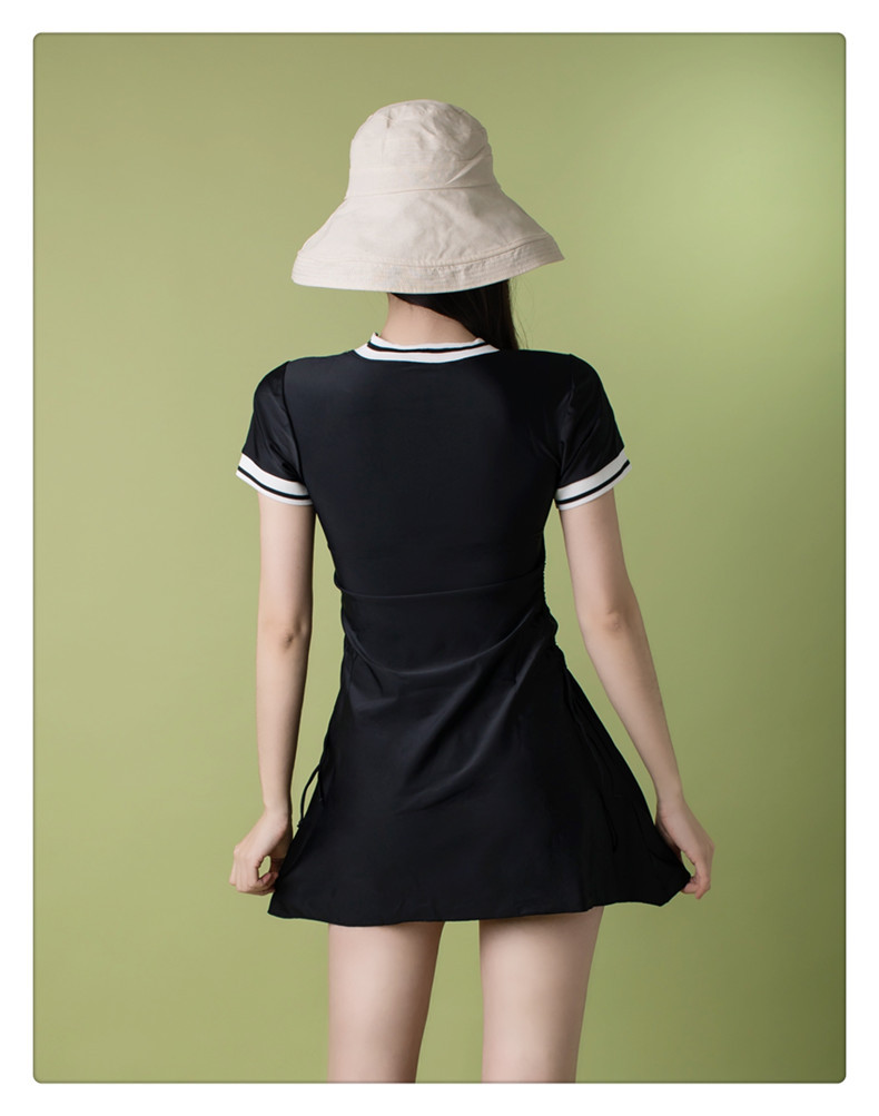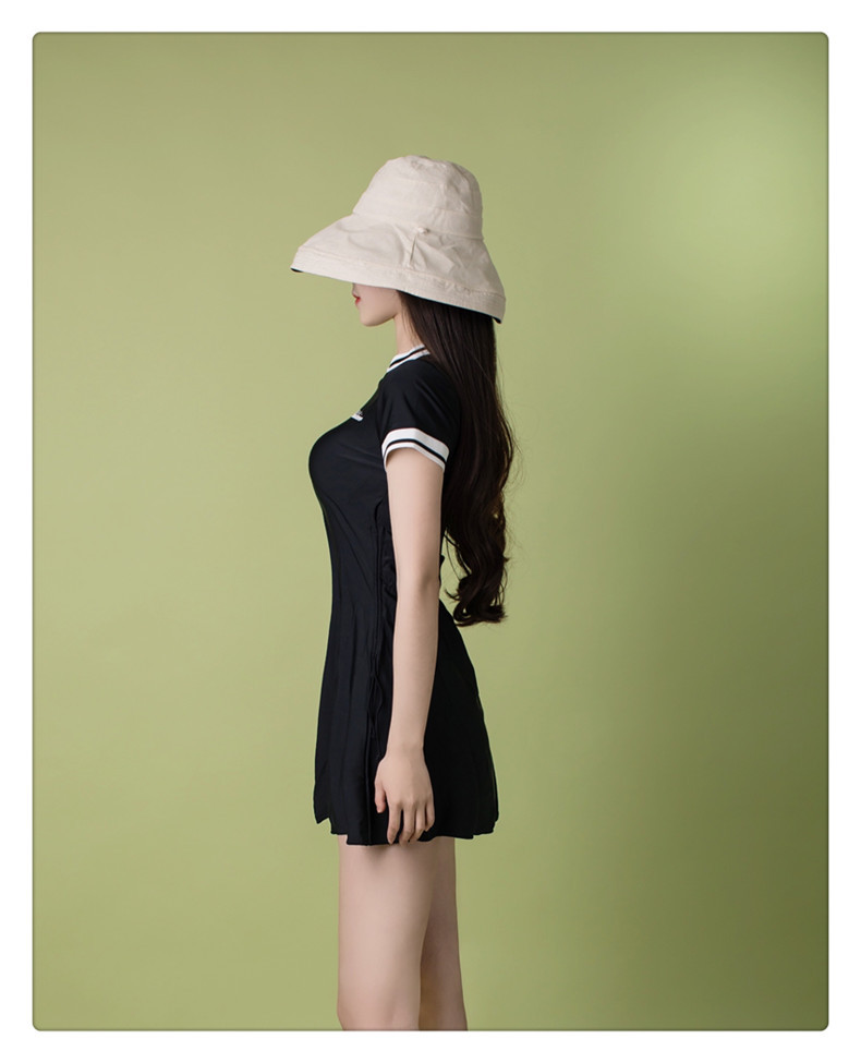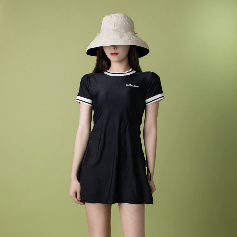 한국 in 수영복 여자의 원피스 스커트 스타일의 플랫 앵글 배꼽-슬리밍 섹시 모인 학생 보수적 인 온천 수영 세트