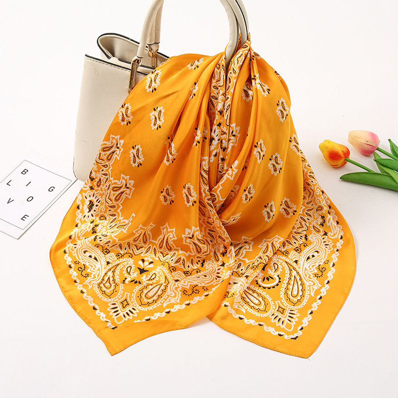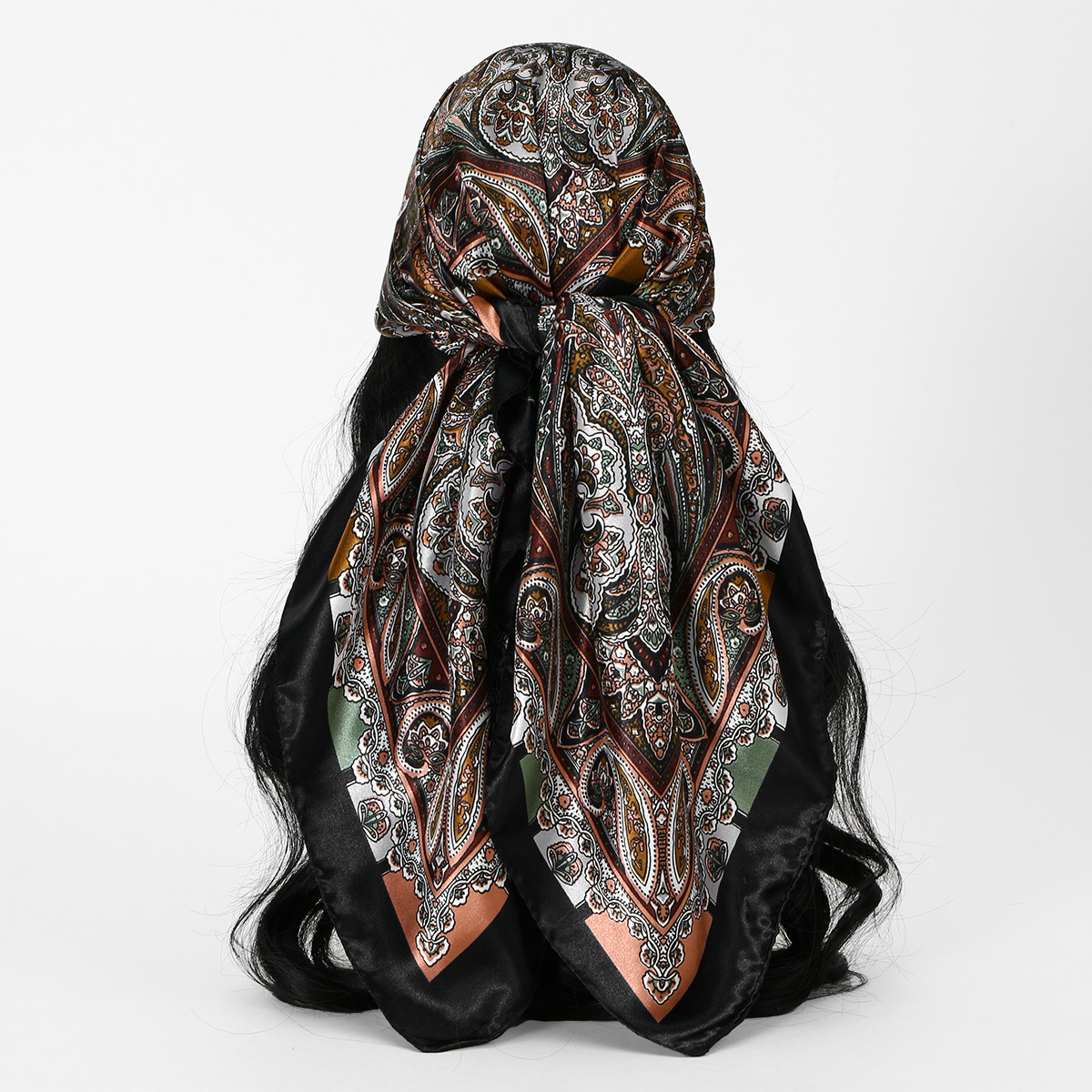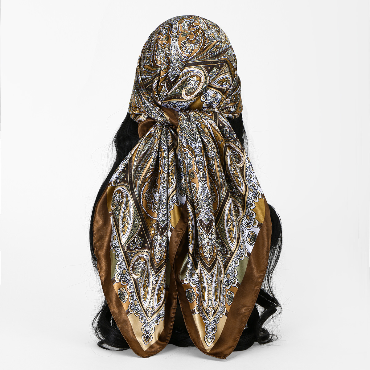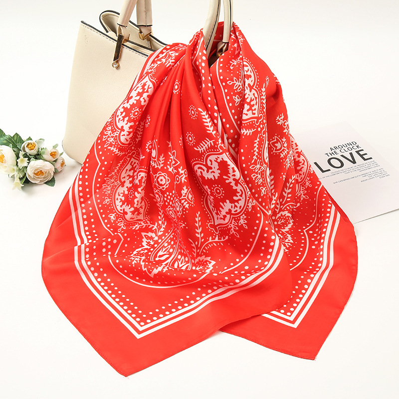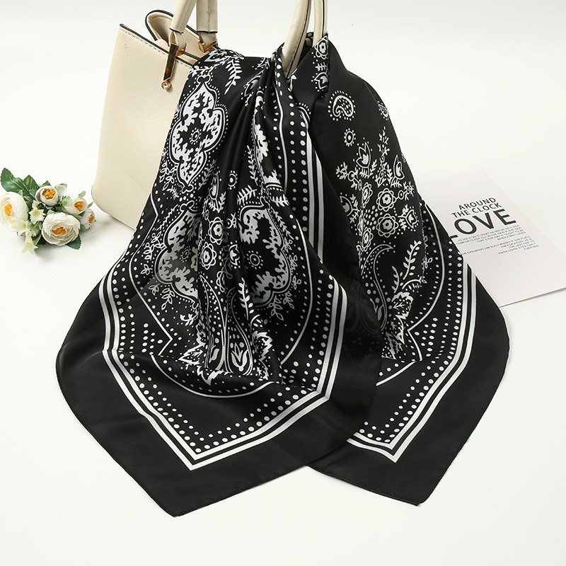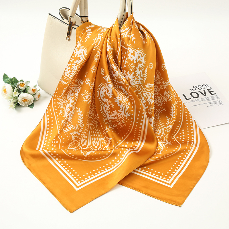 레트로 캐슈플라워 디자인 개성 스카프, 직장 분위기 연출, 실크 느낌의 정사각 스카프, 해외 직구품 FJ016 실크 스카프스토어 가기