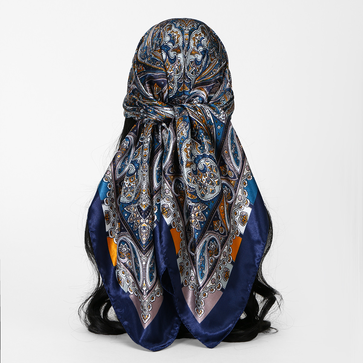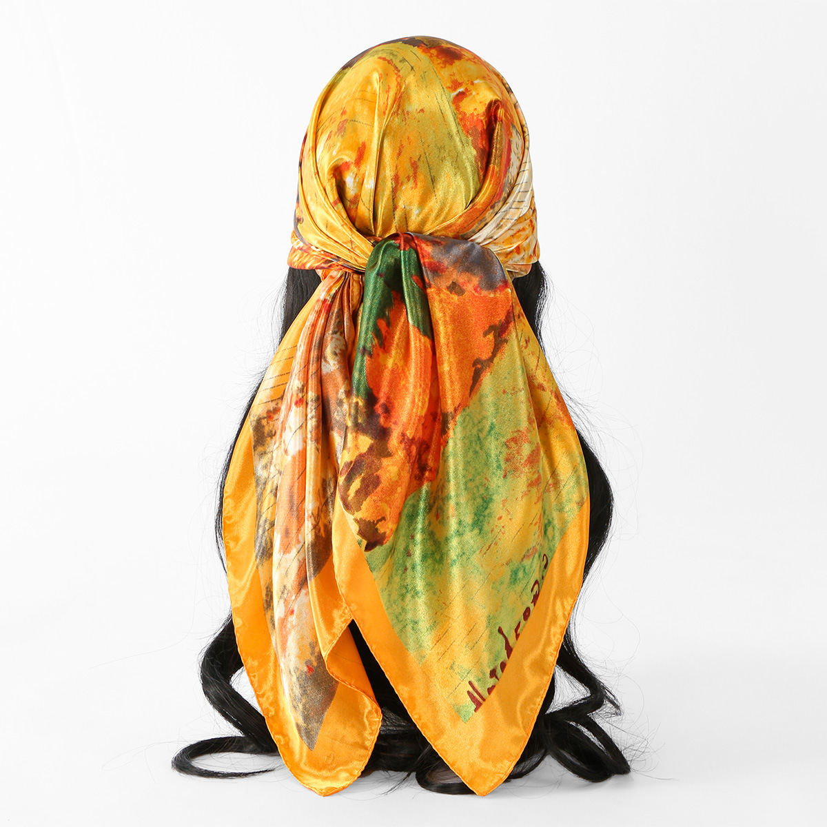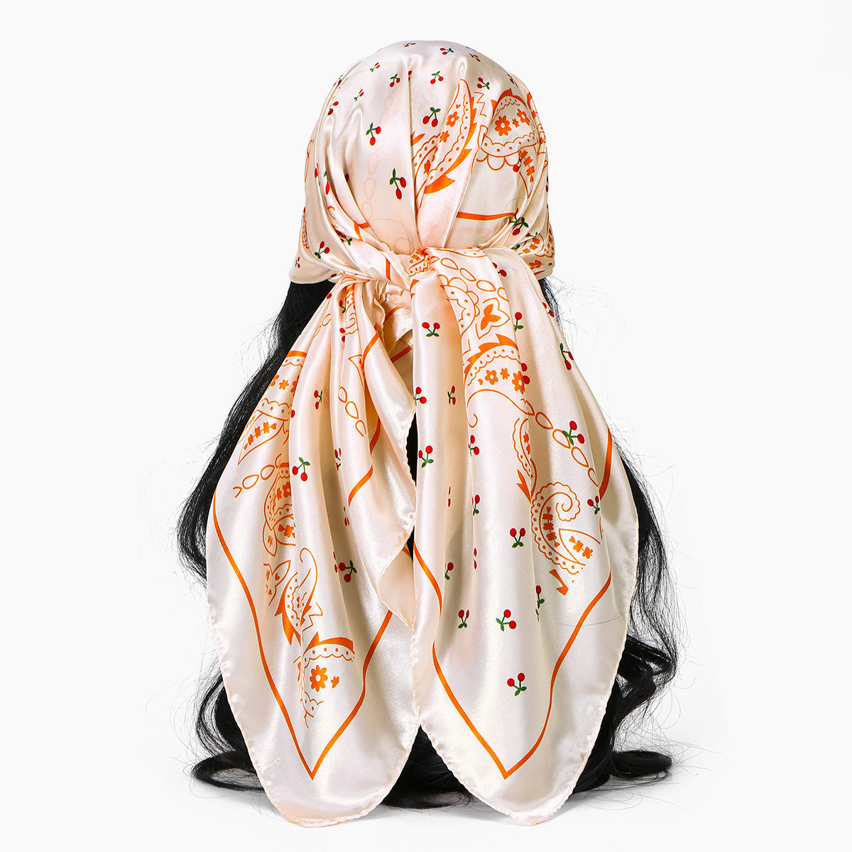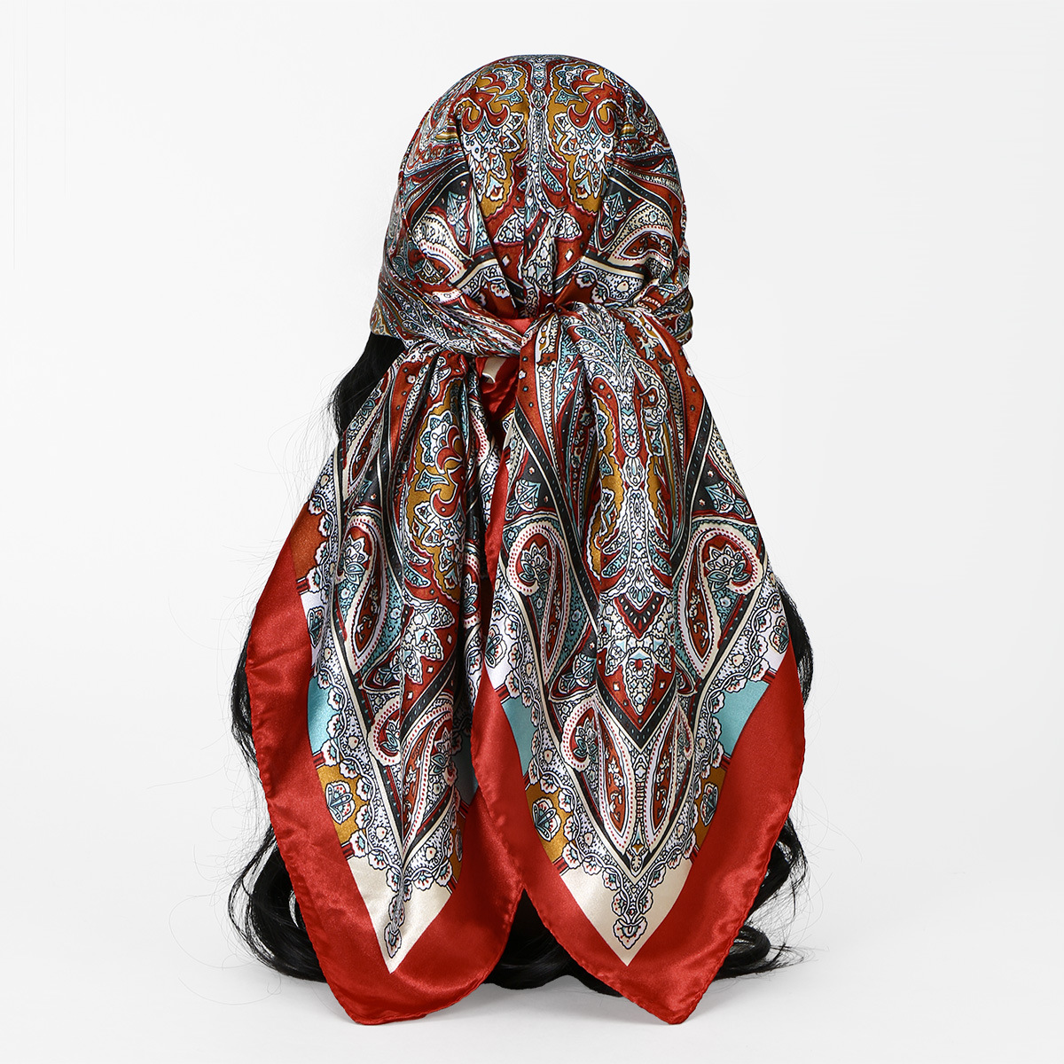 레트로 캐슈플라워 디자인 개성 스카프, 직장 분위기 연출, 실크 느낌의 정사각 스카프, 해외 직구품 FJ016 실크 스카프스토어 가기