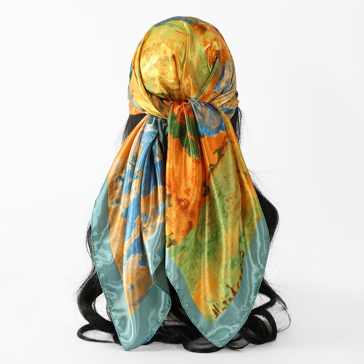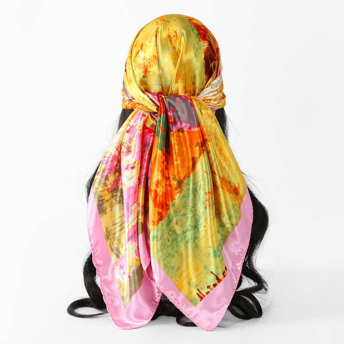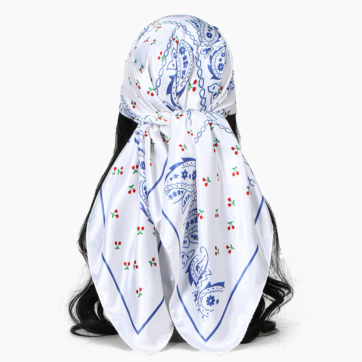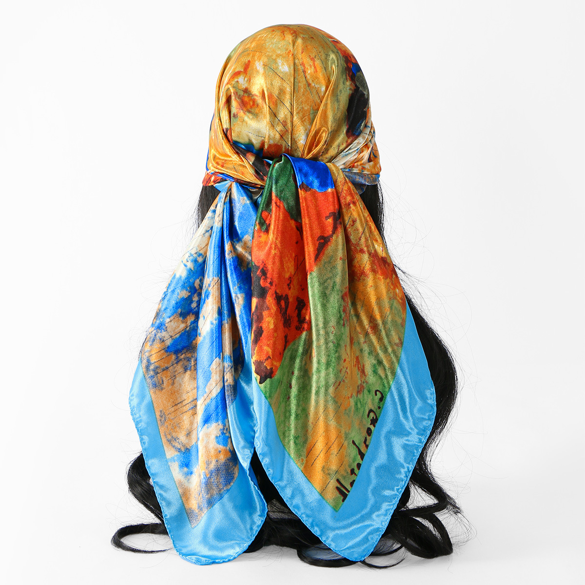 레트로 캐슈플라워 디자인 개성 스카프, 직장 분위기 연출, 실크 느낌의 정사각 스카프, 해외 직구품 FJ016 실크 스카프스토어 가기