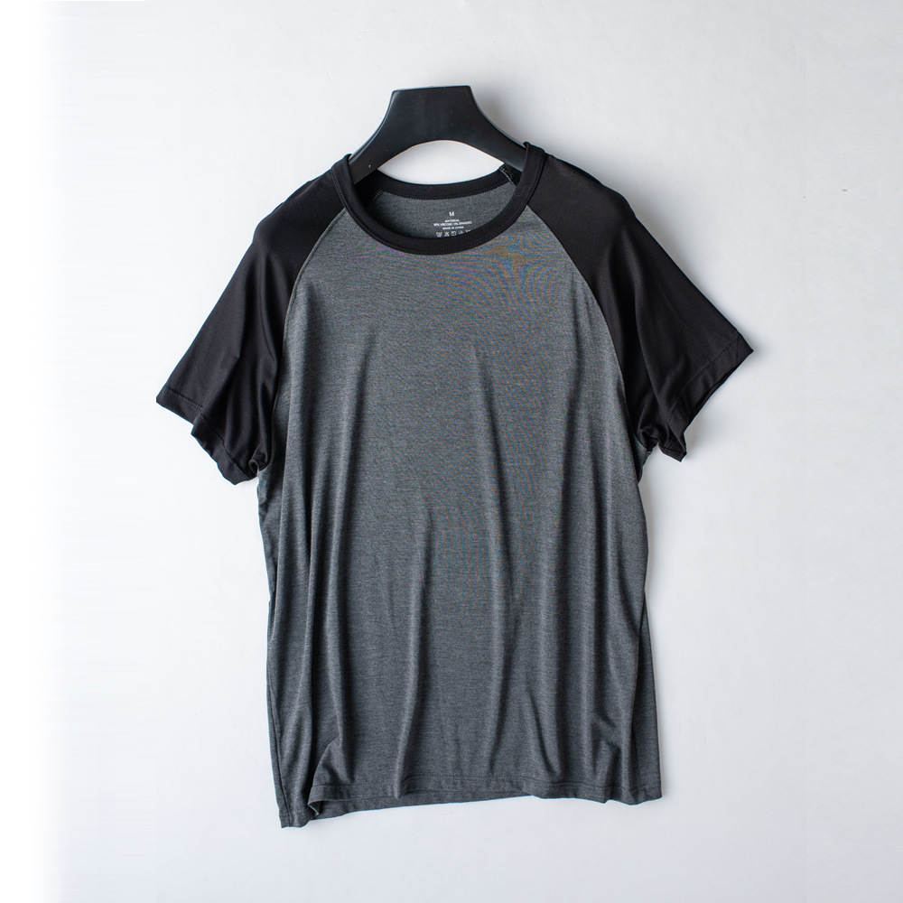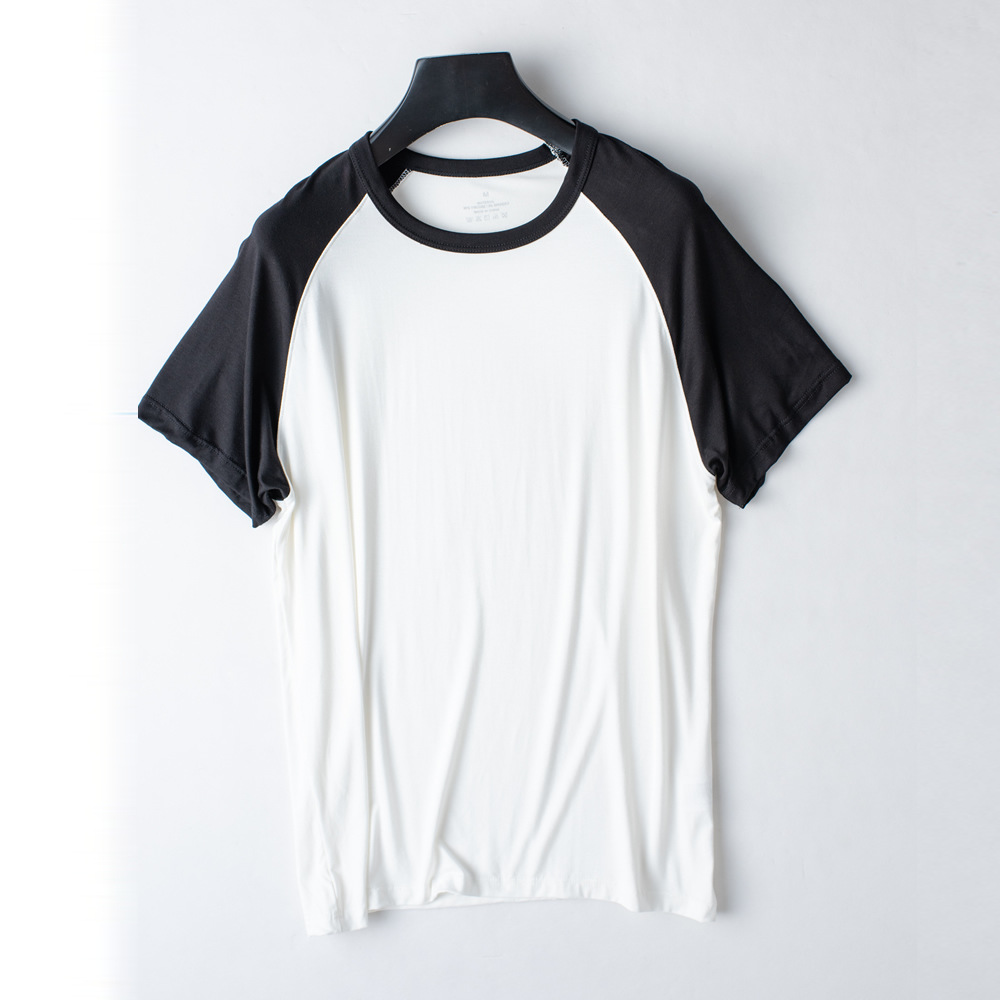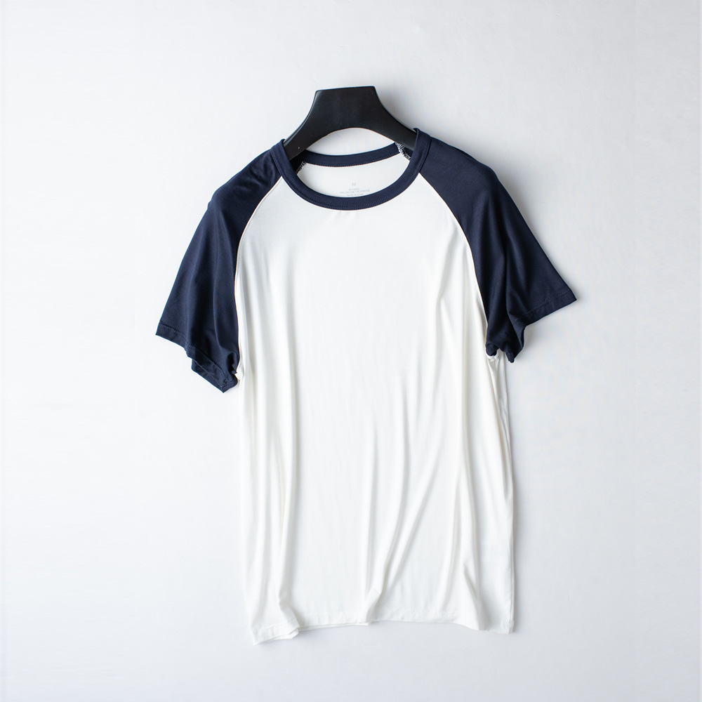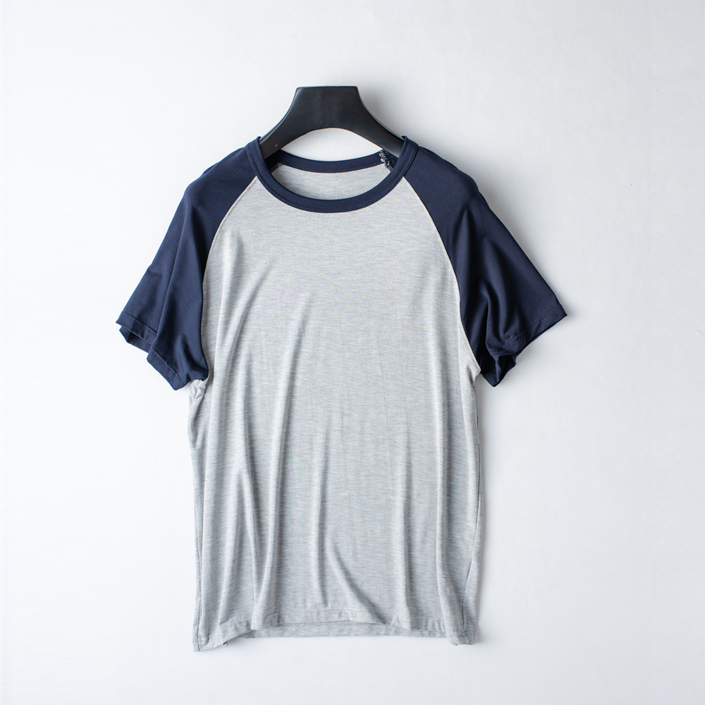 모달 남성용 반팔 티셔츠 라글란 컬러 매칭 여름 신작 얇은 반팔 캐주얼 루즈 탑 남성용 잠옷은 밖에서 착용 가능
