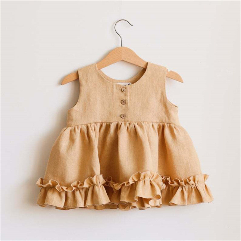 여아 원피스 반바지 여름 면마 아기 여아 프릴 민소매 원피스 팬츠 세트 레트로 스타일