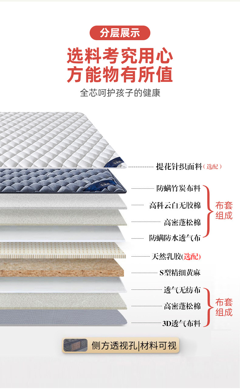 소아 및 노인 척추 보호 착탈식 환경 보호 하드 매트리스 S형 고급 황마 라텍스 매트리스 홈 팜 매트리스스토어 가기