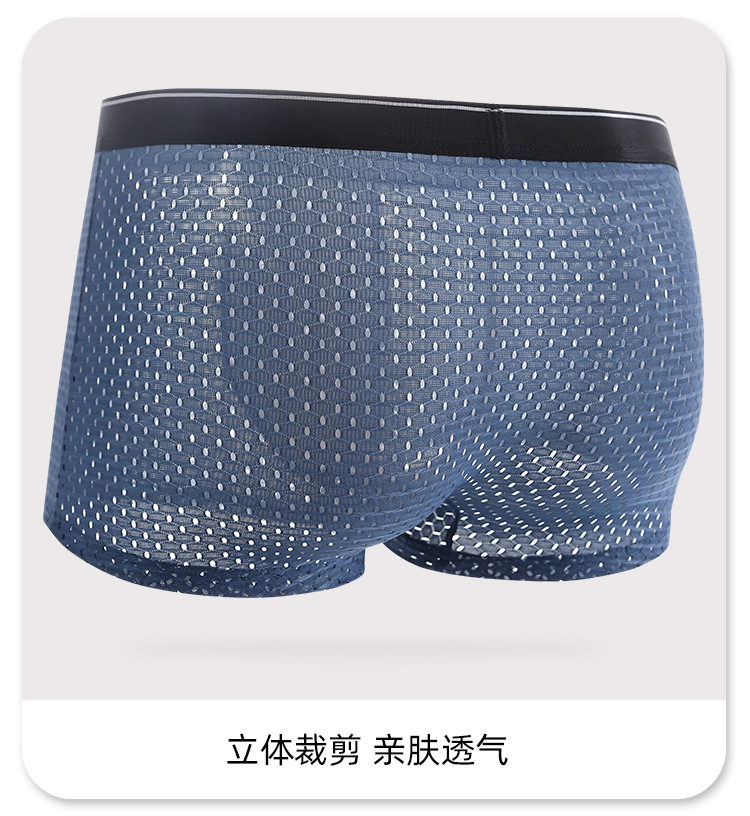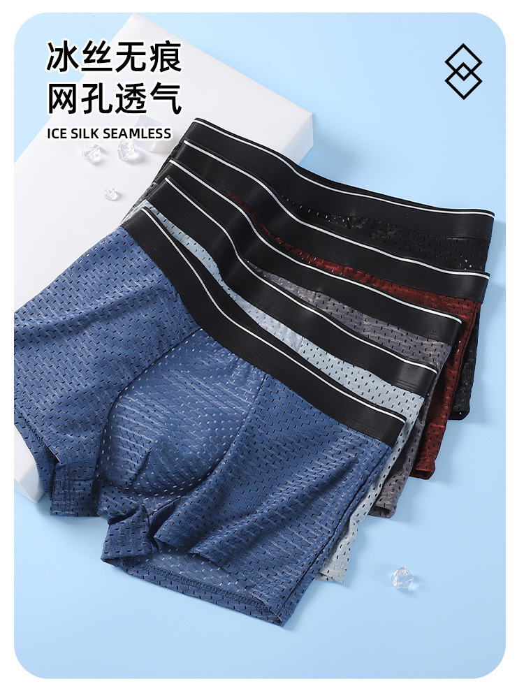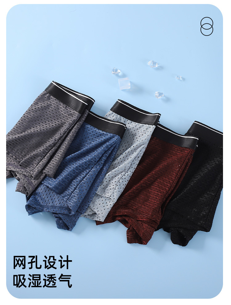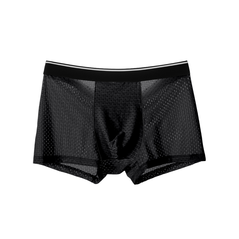 아이스 실크 속옷 남성용 복서 풀 메쉬 플러스 사이즈 남성 속옷 코튼 크로트 미드 웨이스트 복서 바지 아이스 센스 바지