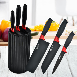 不锈钢黑刃厨房菜刀 厨房刀具套装 厨用刀四件套网红礼品套刀现货
