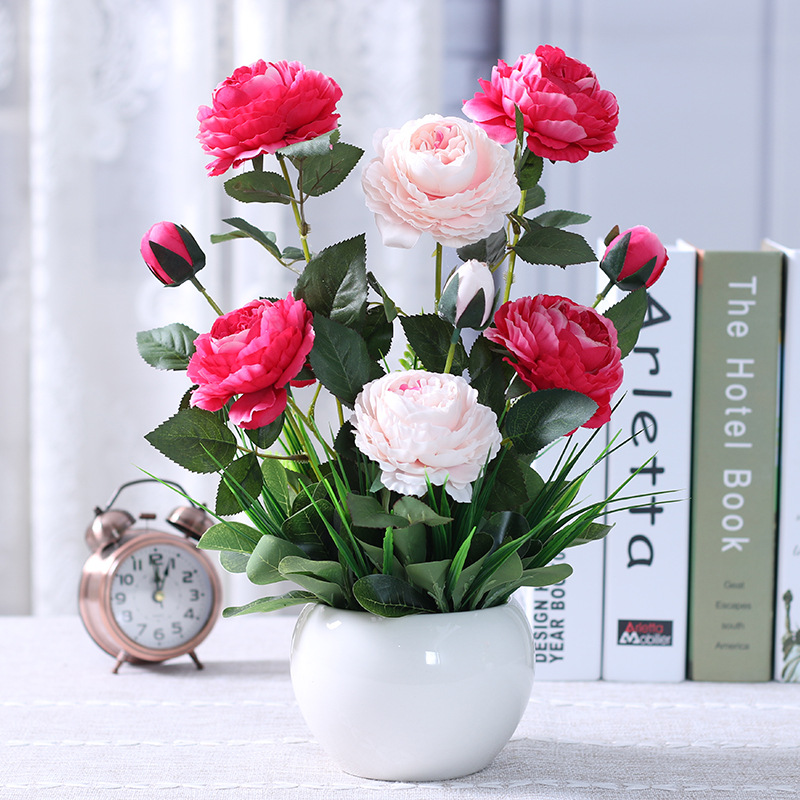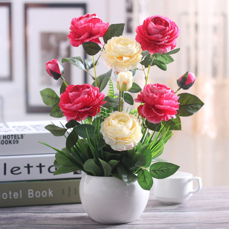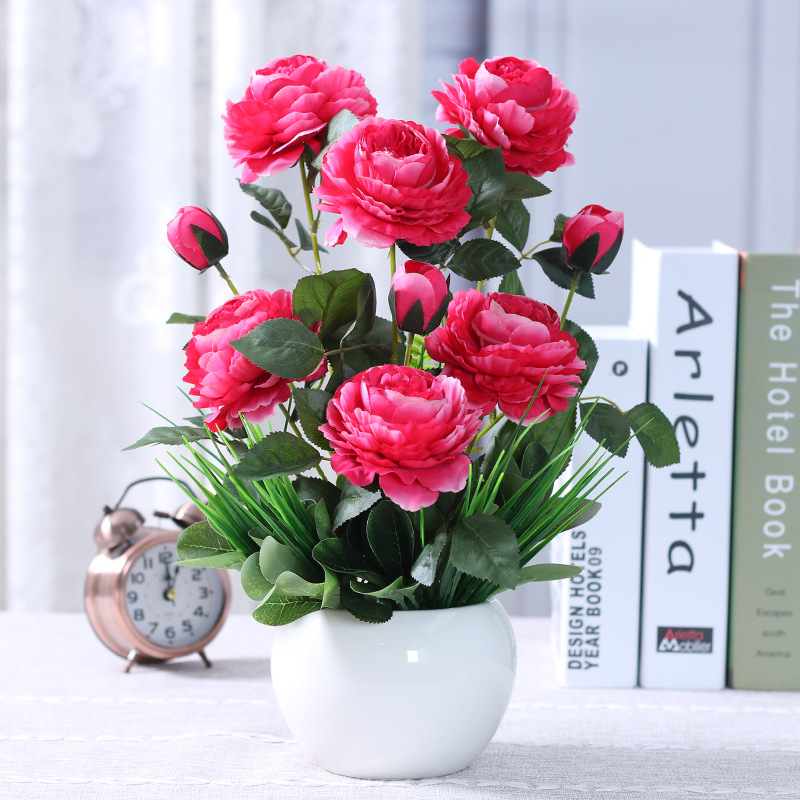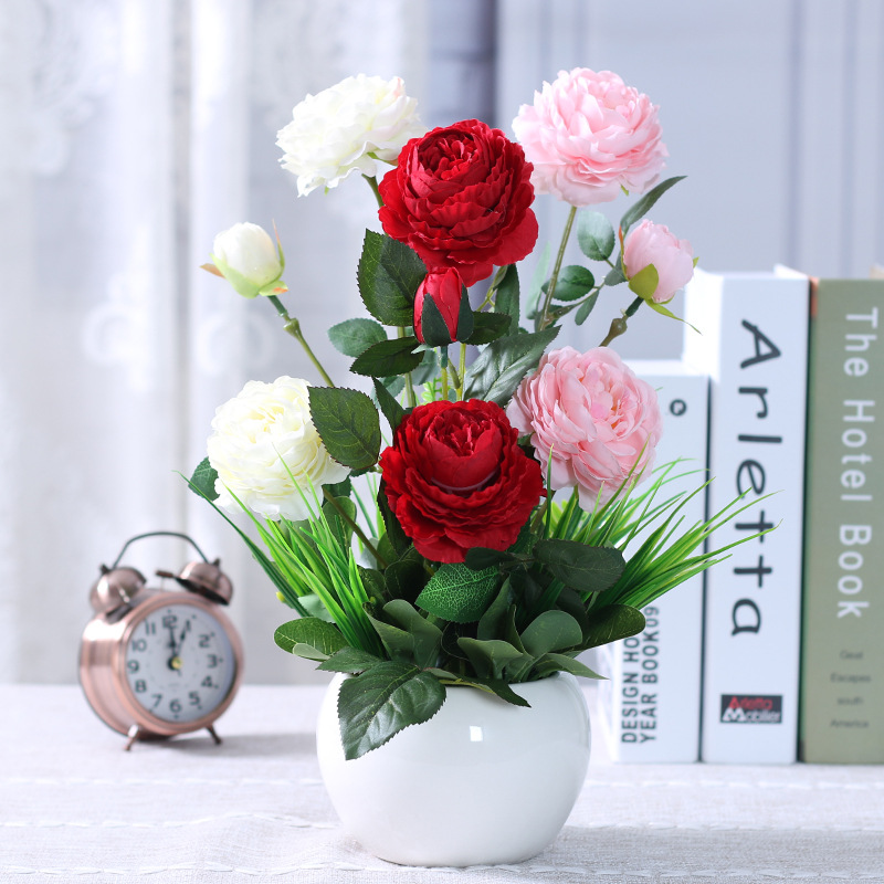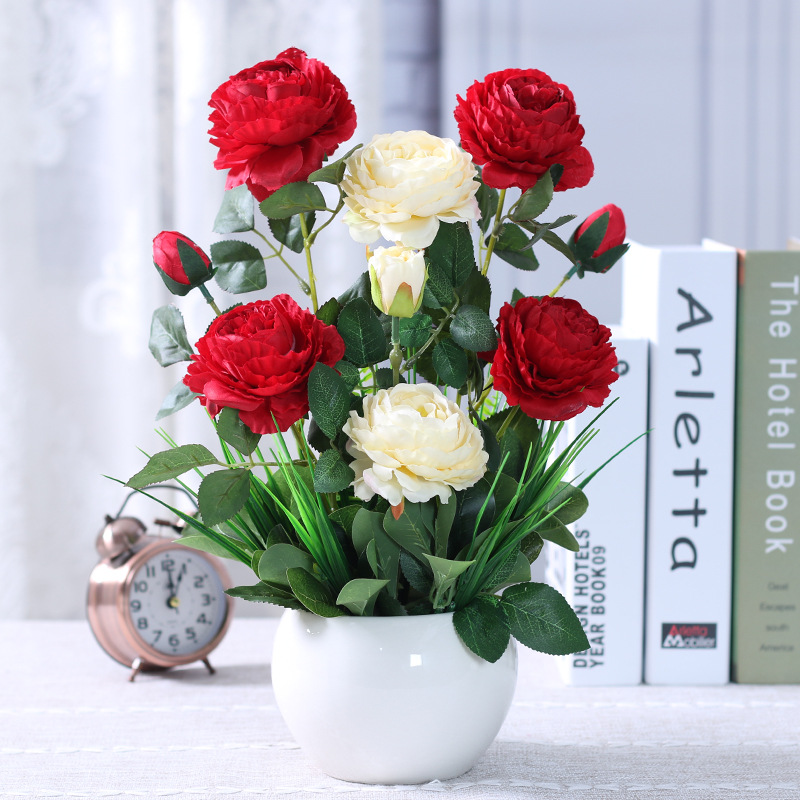 인공 꽃 거실 테이블 장미 꽃꽂이 모란 화분 가짜 꽃 실크 꽃 장식품 냉장고 말린 꽃