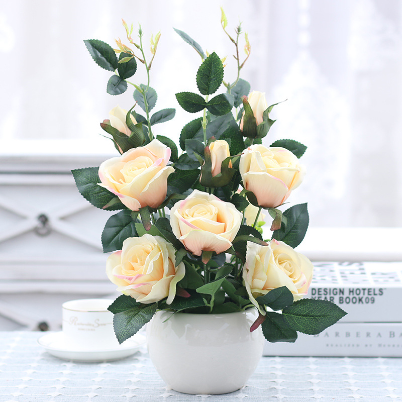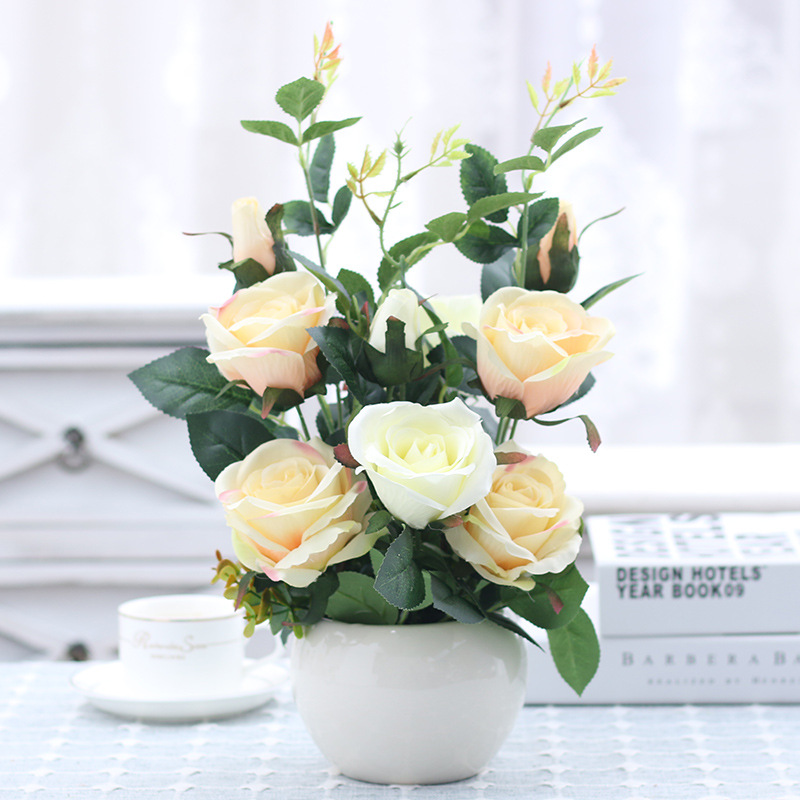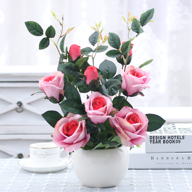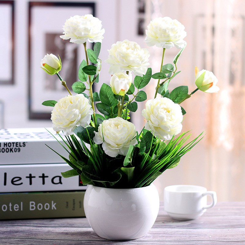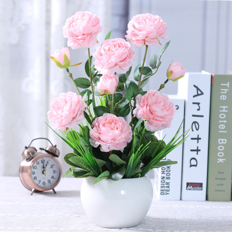 인공 꽃 거실 테이블 장미 꽃꽂이 모란 화분 가짜 꽃 실크 꽃 장식품 냉장고 말린 꽃