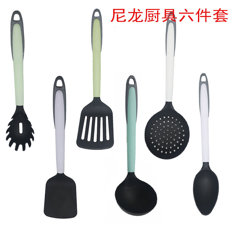 공장 도매 나일론 주방용품 6 피스 컬러 핸들 논스틱 요리 주걱 세트 주방 도구스토어 가기