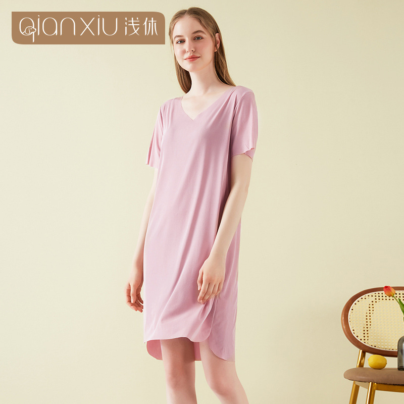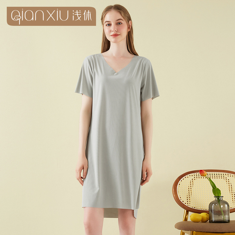 아이스 실크 여성용 잠옷, 시원하고 편안한 여름 신상품, 심플한 대형 사이즈 아이스 실크 홈웨어, 심플하고 캐주얼한 디자인스토어 가기