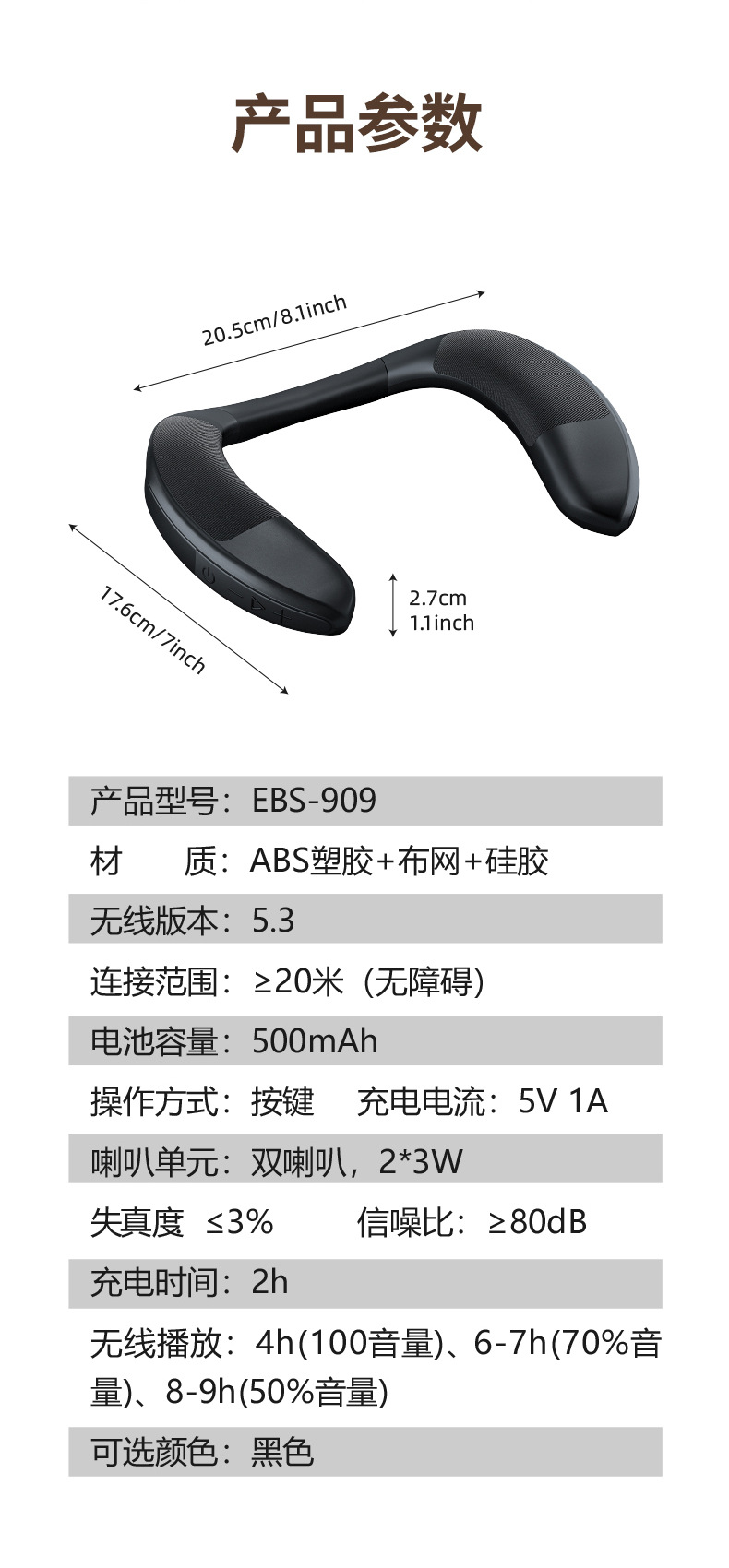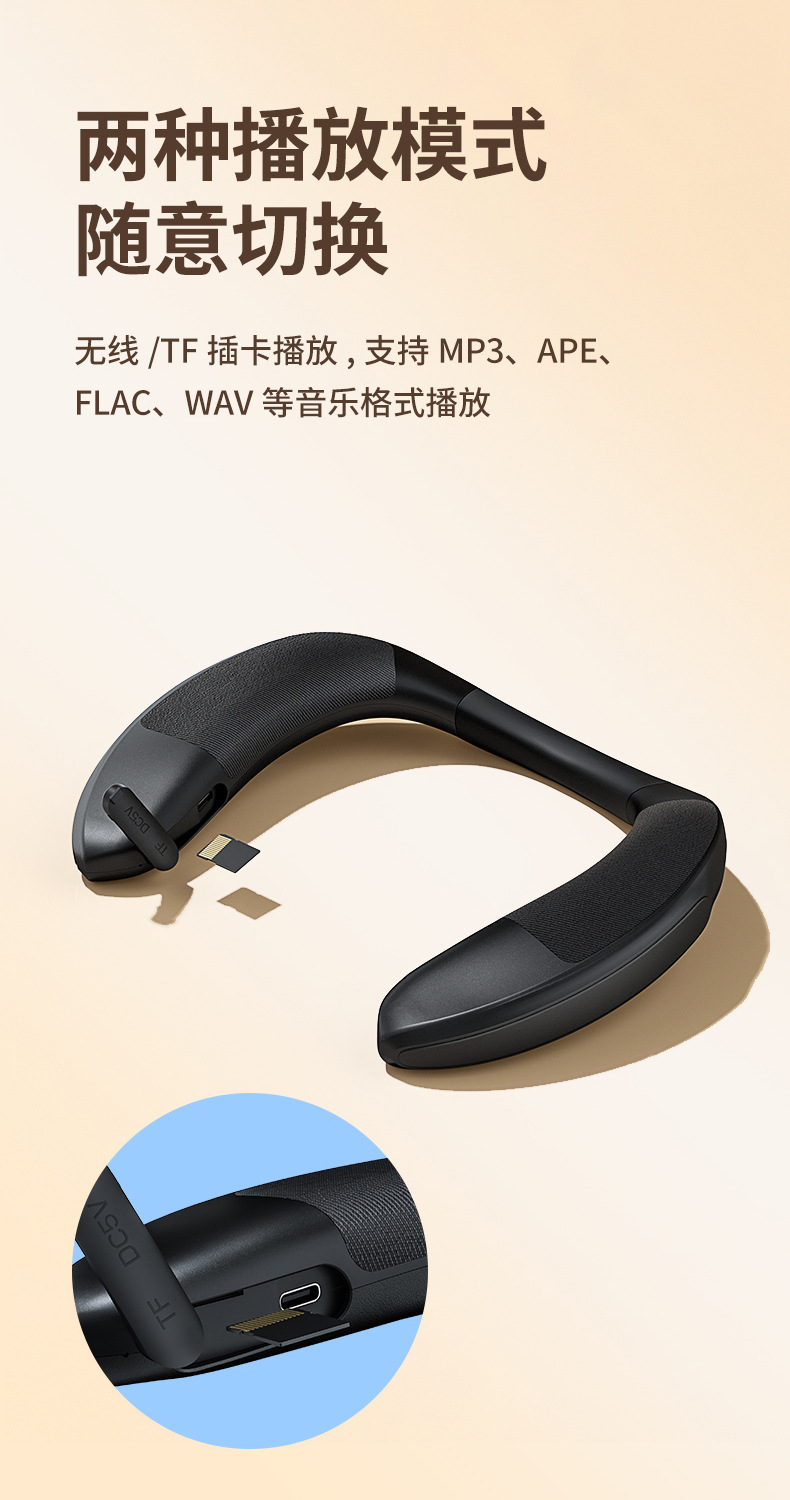 새로운 교수형 목 유형 무선 블루투스 스피커 패브릭 휴대용 소형 스피커 웨어러블 스테레오베이스