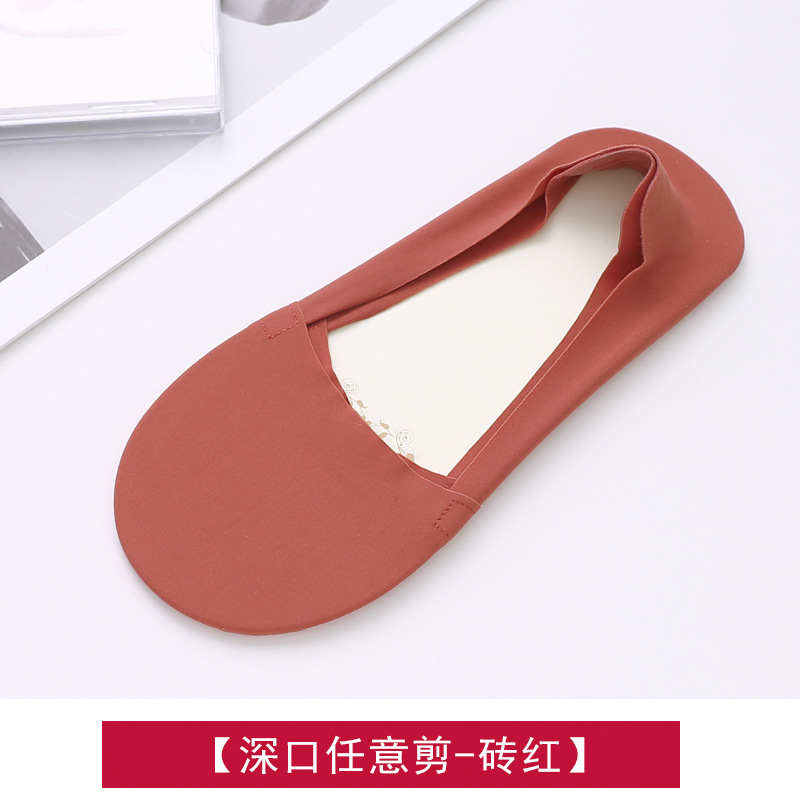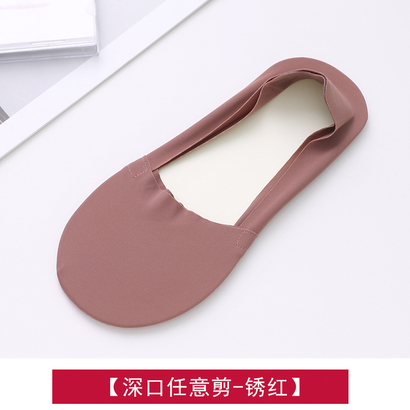 아이스 실크 양말 여성용 가벼운 입 단색 보트 양말 귀여운 봄과 가을 짧은면 양말 여름 얇은 보이지 않는 양말 여성용 미끄럼 방지