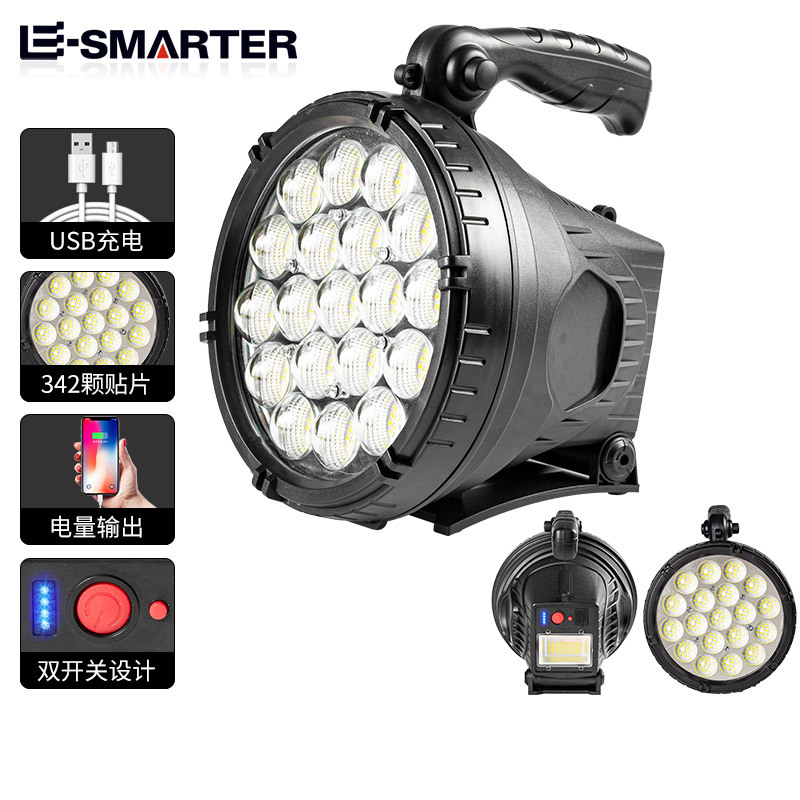 국경 간 새로운 강력한 빛 서치 라이트 USB 충전 고출력 장거리 야외 휴대용 손전등 주도스토어 가기