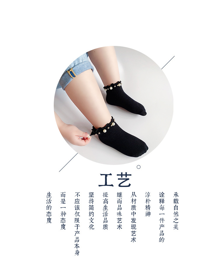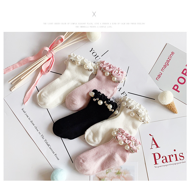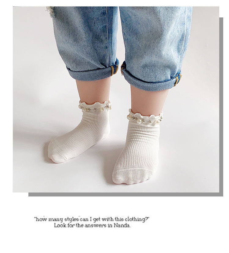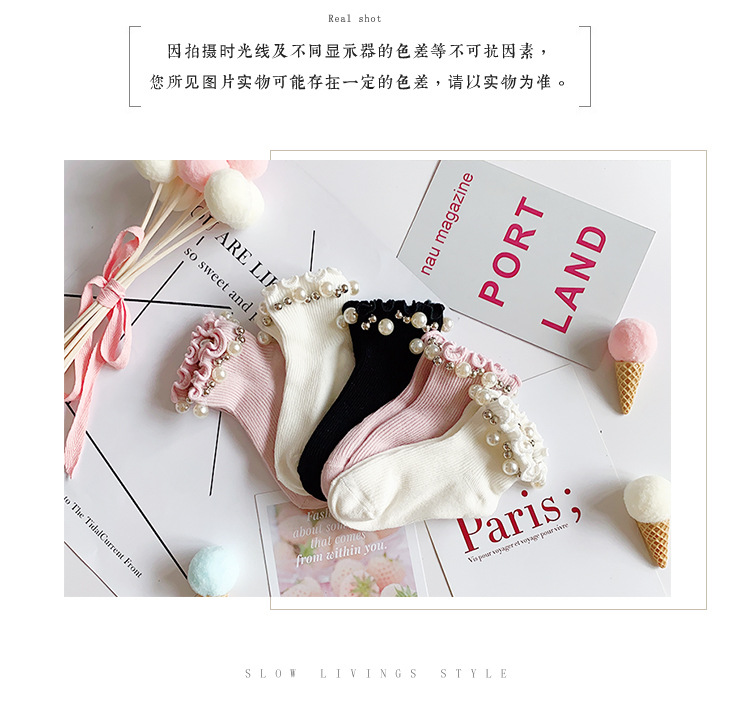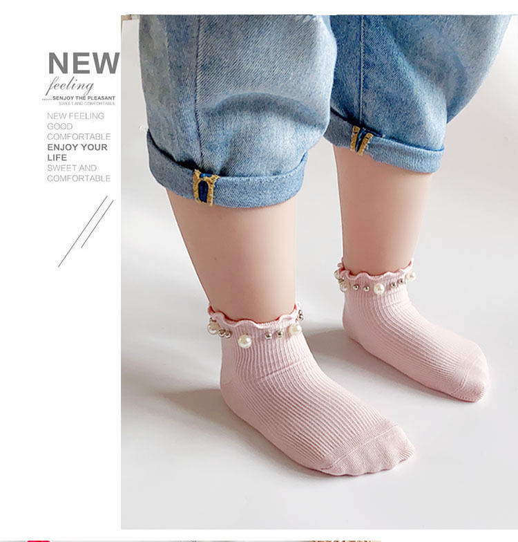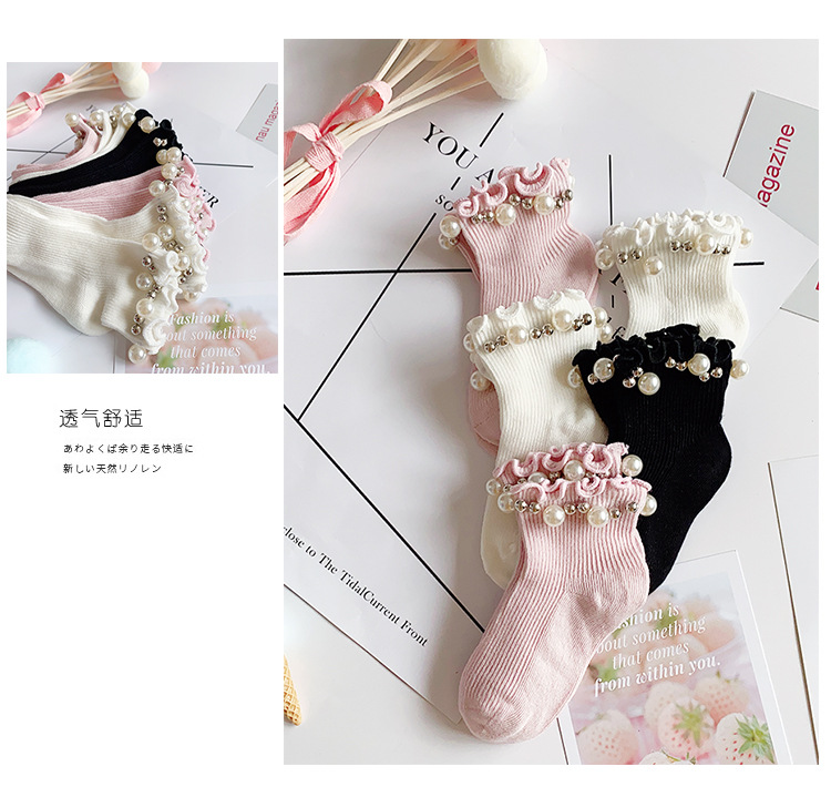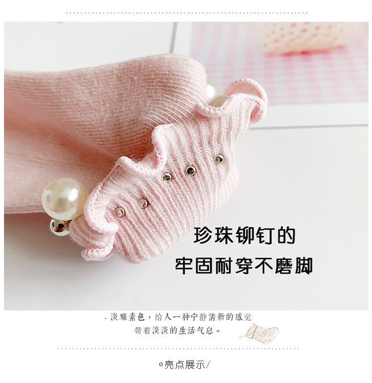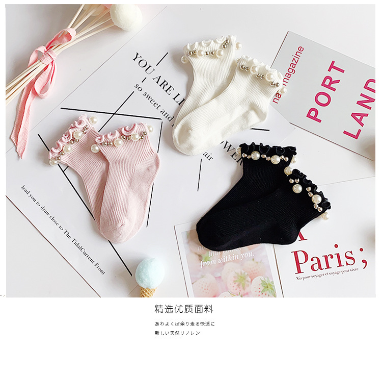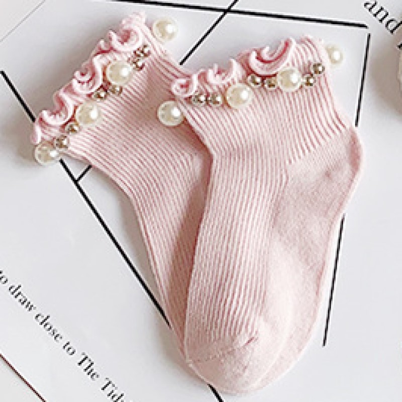 어린이 면 양말 봄과 여름 한국 스타일 캔디 리본 진주 액세서리 Auricularia 레이스 수직 스트립 소녀 아기 공주 양말