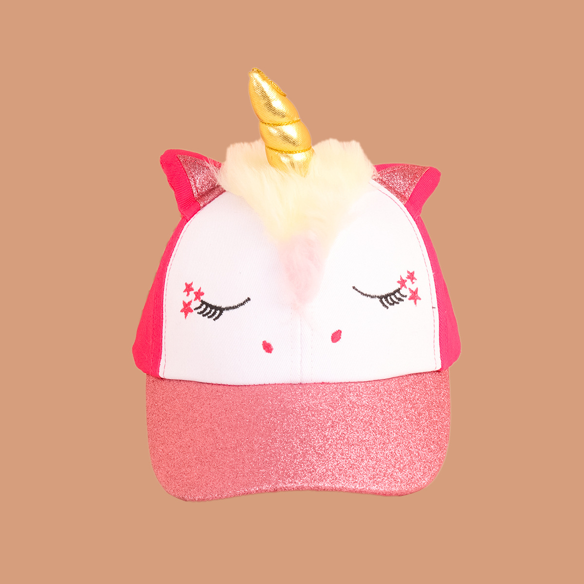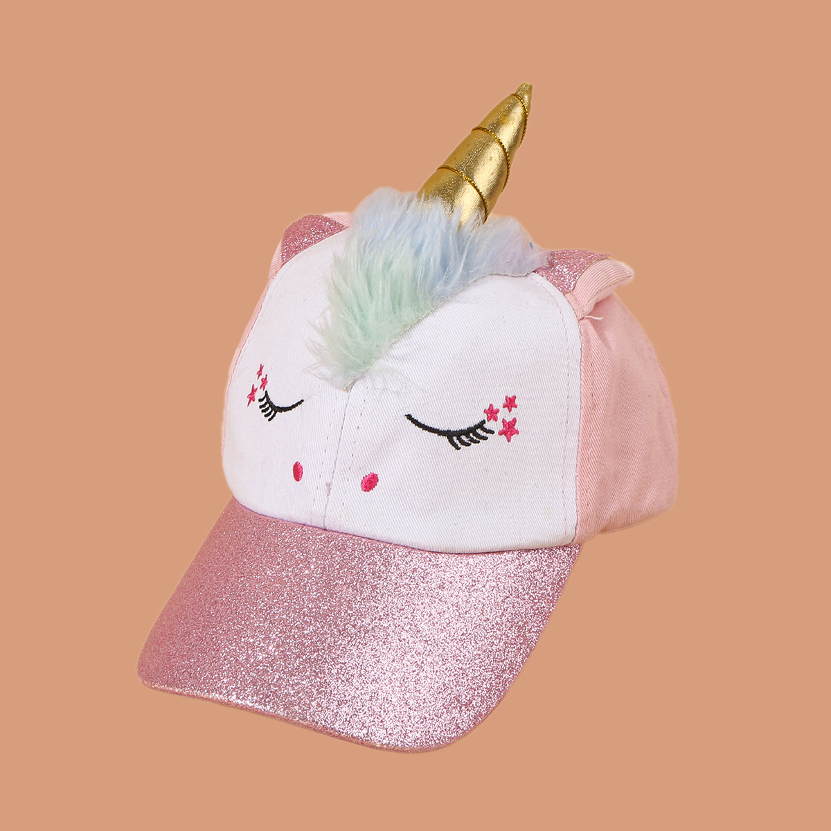 • 핑크 화이트 주문 유니콘 야구 모자-핑크 화이트