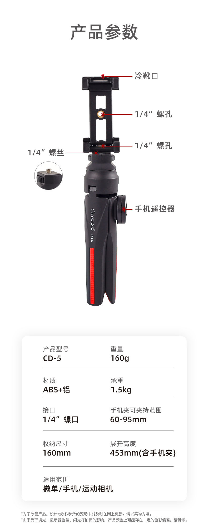 Xixi CD5 블루투스 휴대 전화 확장 삼각대 휴대용 셀카 스틱 브래킷 TikTok 라이브 셀카 Vlog