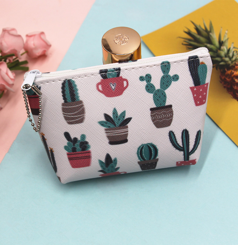 크로스 보더 선인장 보관 PU 동전 지갑 창조적 인 만화 패션 작은 가방 헤드셋 키 동전 여성 지갑