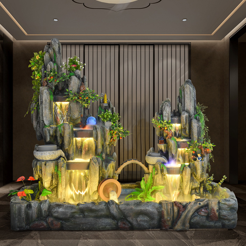 대형 rockery 흐르는 물 분수 장식 실내 발코니 호텔 클럽 레스토랑 풍수 바퀴 창조적 인 물 풍경