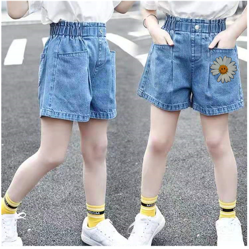 아동 의류 제조 업체 도매 3-15 세 소녀 여름 외국 스타일 데님 반바지 큰 어린이 패션 데님 반바지 조수스토어 가기