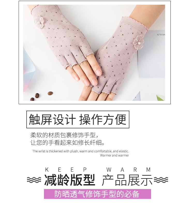 여름 반 손가락 장갑 얇은 면 자외선 차단 자외선 차단제 통기성 미끄럼 방지 귀여운 야외 승마 차 따기 네일 아트