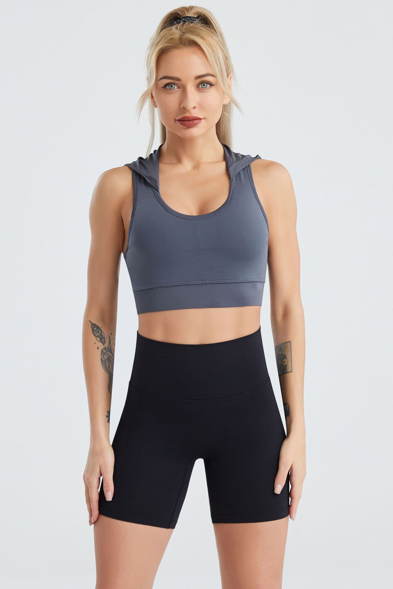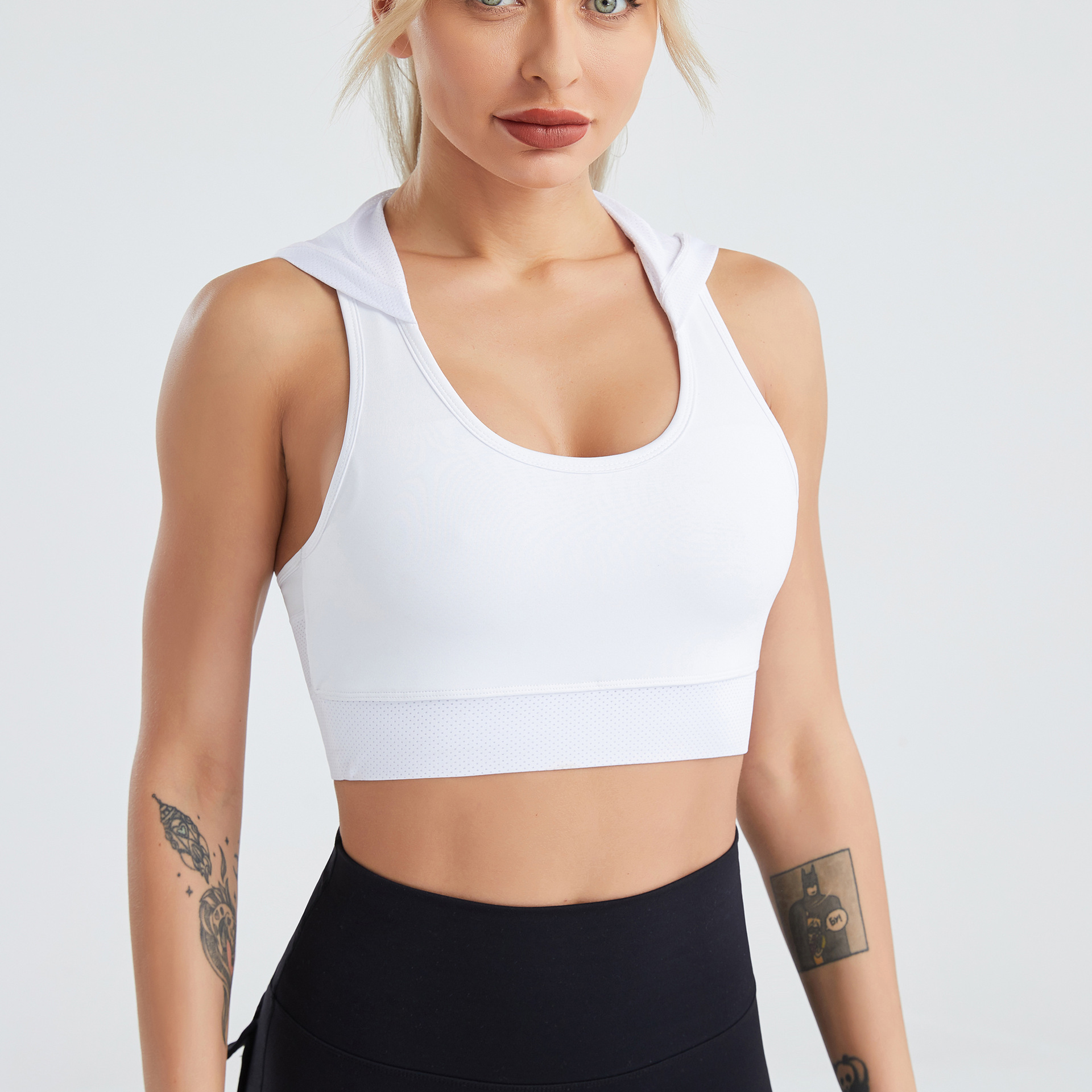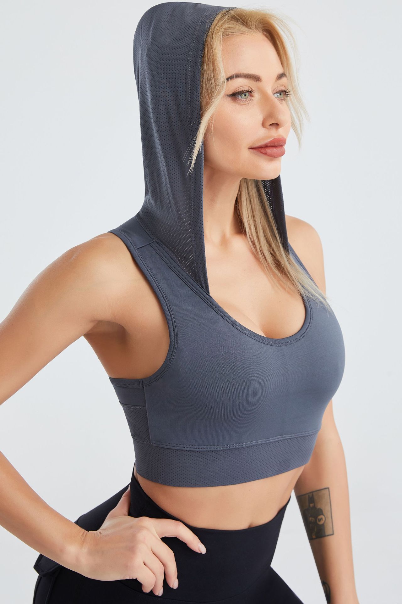 여성용 시그투 크로스보더 후드 요가복, 여름용 메쉬 통기성 속건 조끼, 누드 느낌의 러닝 스포츠 브라