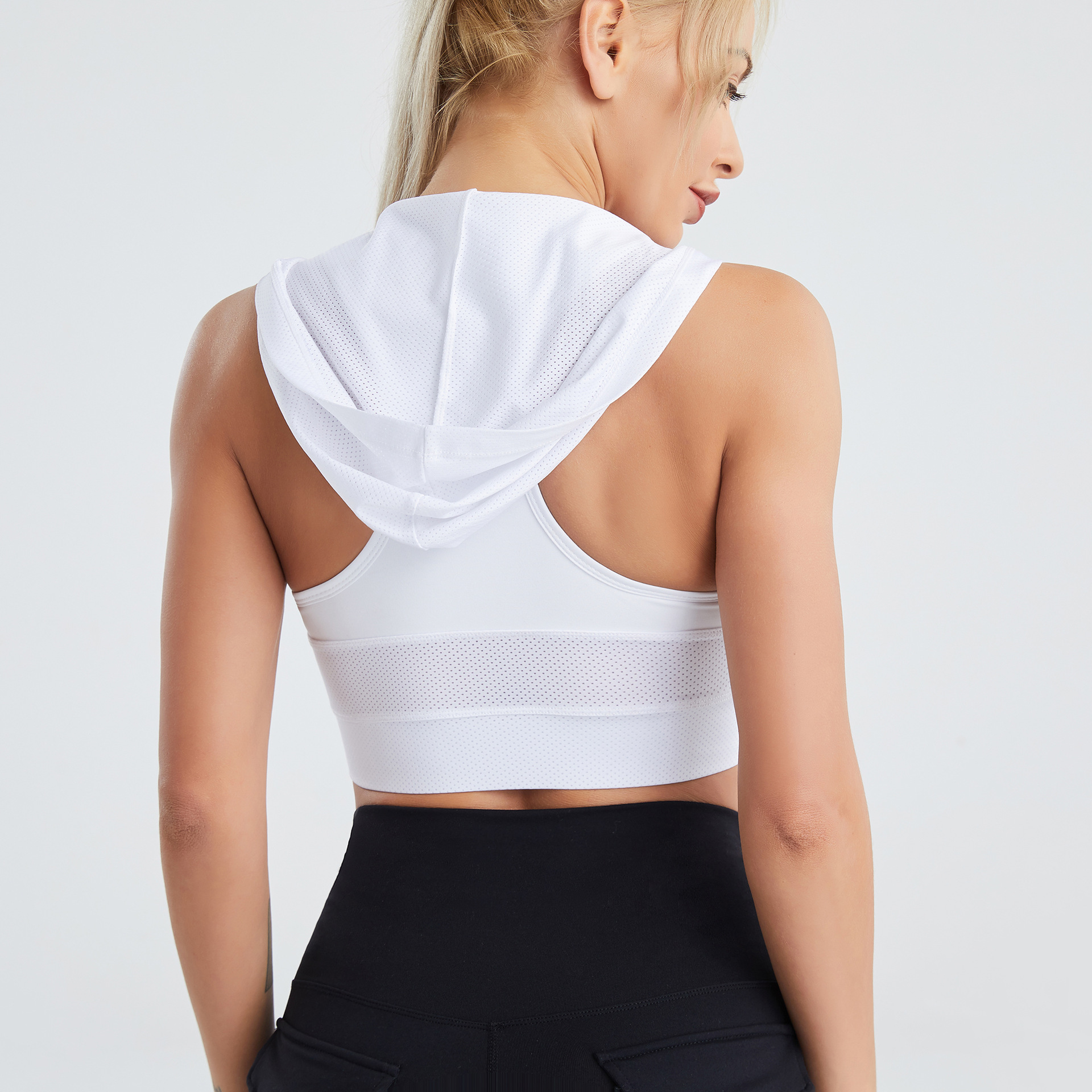 여성용 시그투 크로스보더 후드 요가복, 여름용 메쉬 통기성 속건 조끼, 누드 느낌의 러닝 스포츠 브라스토어 가기